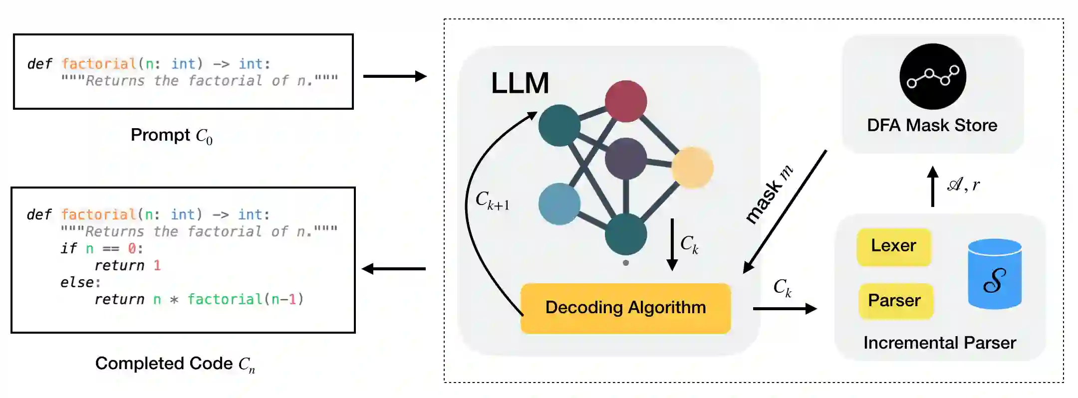 翻译:大语言模型(LLM)在复杂人工智能应用中得到了广泛使用。这些应用强调LLM输出必须遵循特定格式,以便与系统中的其他组件集成。通常,格式规则(例如用于JSON、YAML等数据序列化格式或编程语言代码)以上下文无关文法(CFG)表示。由于LLM存在幻觉和不可靠性问题,指导LLM遵循指定语法已成为日益重要的挑战。为此,我们提出了SynCode,一个新颖的、高效且通用的LLM语法解码框架。SynCode确保相对于形式语言的CFG具有可靠性和完备性,能有效保留有效标记并过滤无效标记。该框架使用基于语言文法DFA离线构建的高效查找表——DFA掩码存储,以实现高效生成。实验证明,SynCode可无缝集成任何由CFG定义的语言,重点测试了JSON、Python和Go输出的生成。在评估SynCode对JSON生成有效性的实验中,SynCode完全消除了语法错误,并显著优于当前最先进的基线方法。此外,我们的结果表明,SynCode在生成的Python和Go代码中显著减少了96.07%的语法错误,彰显了其在提升LLM生成语法精确性方面的实质性影响。代码已开源:https://github.com/uiuc-focal-lab/syncode
