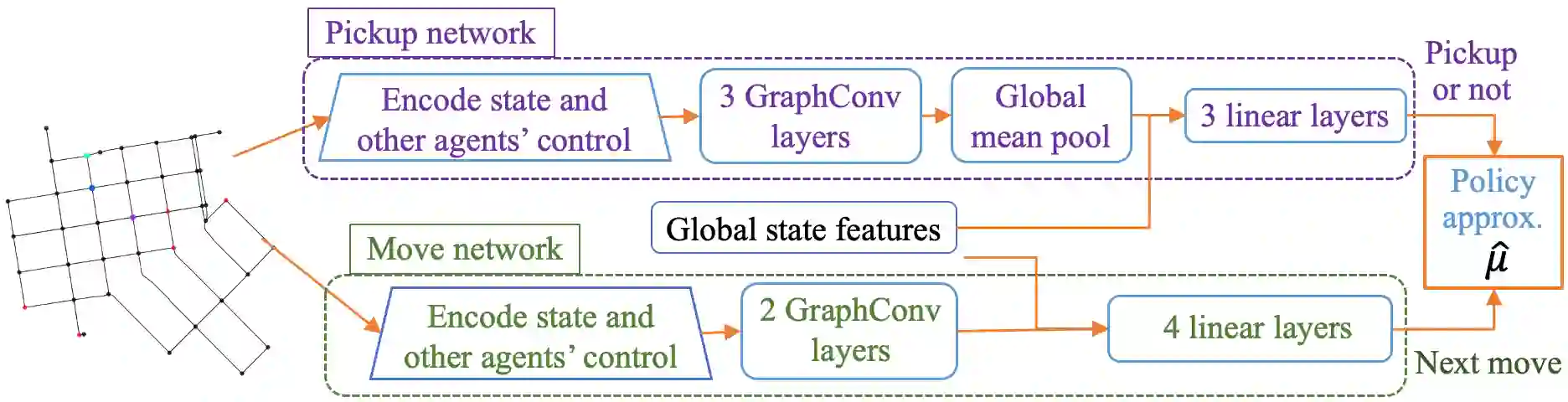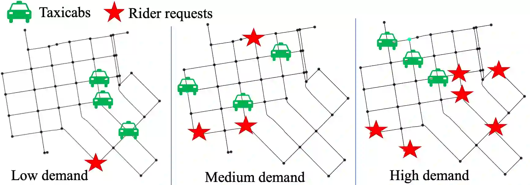 翻译:我们提出了一个学习框架,生成用于城市地图上服务随机出现请求的自主车队的路由/取货策略。我们专注于以下策略:1)引起车辆之间的协调,从而减少等待请求的时间;2)具有非悖论性,考虑先前可能出现的未来请求;3)可以适应基础需求分布的变化。特别是,我们有兴趣的策略是适应城市环境中实际需求情况的波动,例如高峰时段与非高峰时段。我们通过组合以下方式实现了这一点:(i)一种在线游戏算法,以提高离线训练策略的性能,(ii)一种离线近似方案,以适应基础需求模型的变化。特别是,我们通过使用 Wasserstein模糊集的q-有效半径量化有效区域,实现了对我们学习的策略适应不同需求分布的功能。我们提出了一种机制,在当前需求超出原始有效区域时切换最初训练的离线近似。在这种情况下,我们建议使用一个离线体系结构,该离线体系结构是在与当前需求更接近的历史需求模型上进行训练的。我们使用旧金山的实际出租车请求学习路由和取货策略,这些请求在高峰和非高峰时段之间具有高变化性,展示了我们的方法能够适应实际需求分布的波动。我们的数值结果表明,我们的方法优于基于其他滚动强化学习方案以及运筹学中其他古典方法。