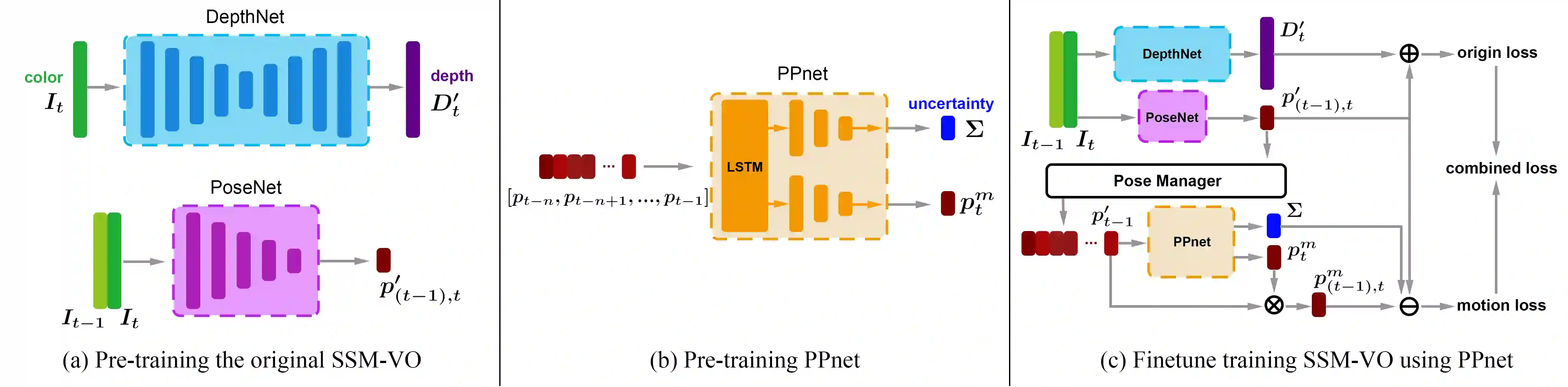 翻译:我们展示了一种新的自我监督的算法(motionHint),用于单眼视觉测量(VO),它考虑到运动限制因素。我们的方法的一个重要方面是使用适当的运动模型,帮助现有自我监督的单眼VO(SSM-VO)算法(SSSM-VO),以克服在自我监督的损失功能范围内与当地微型算法有关的问题。这个运动模型以名为 PPnet 的神经网络来表达。它受过训练,可以粗略地预测相机的下一个形状和这一预测的不确定性。我们自我监督的方法将原来的损失和运动损失结合起来,这就是预测和产生的自我提升之间的加权差异。用现有的两种SSSMM-VO(SS-V)算法作为我们的基线,我们用标准 KITTI 和 EuRoC 基准来评估我们的移动算法。实验结果显示,我们的移动Hint算法可以很容易地应用到现有的开放源状态的SSSSMMO-V系统,从而大大改进KITTI数据设置的性能,通过28.73%的移动来降低模型结果。
