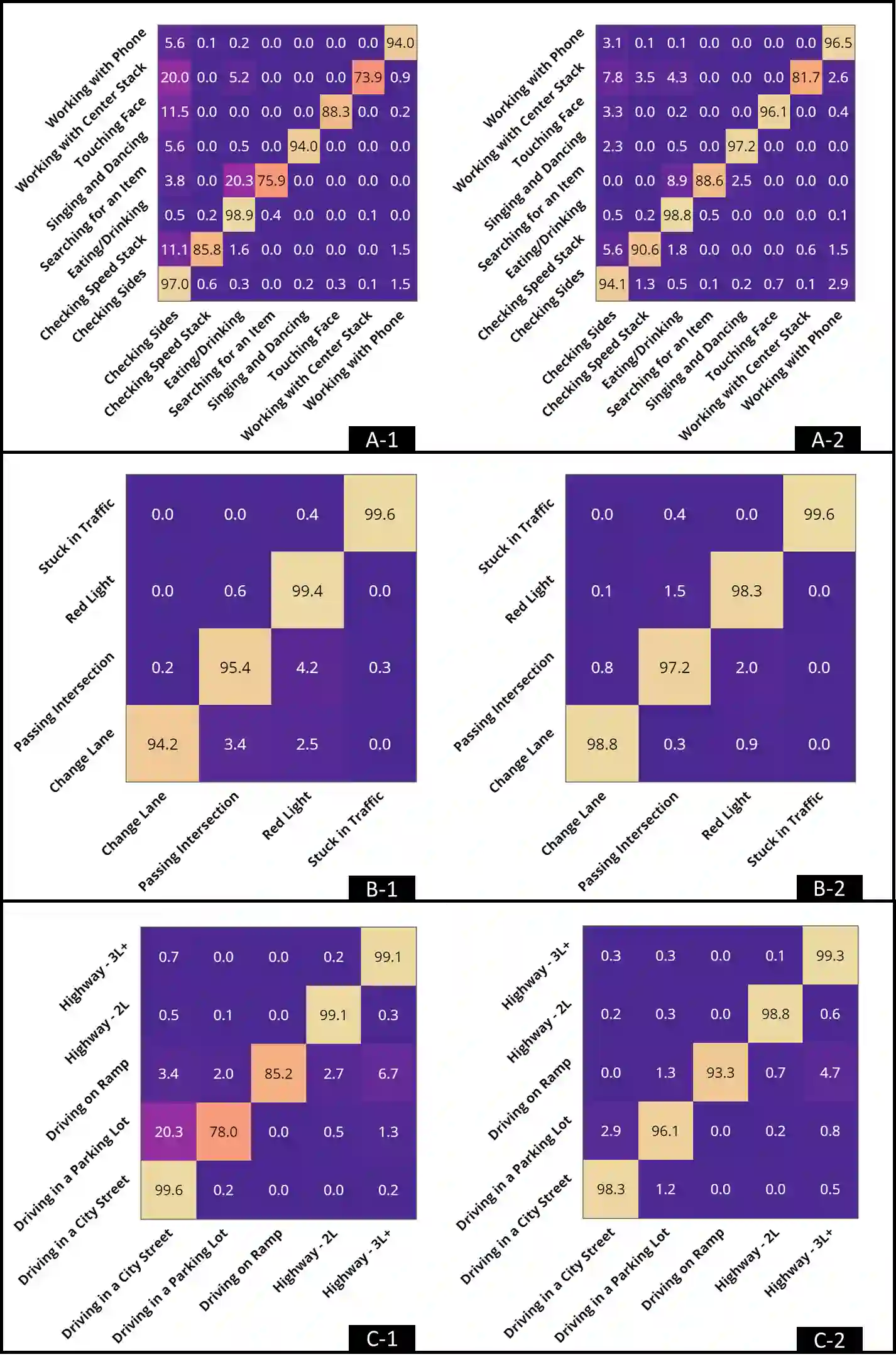 翻译:将驱动器、视网膜内和外部环境的指针整合到车辆的决策中,是半自动车辆安全的核心。已经开发了多种系统,为车辆提供上下文,通常依靠视频流捕捉司机的物理和环境状态。虽然视频流是一个丰富的信息来源,但提供上下文的能力在某些情况下具有挑战性,例如低光度环境(例如夜间驾驶)和高度隐私侵入性。在这项研究中,我们通过智能观察利用被动感应对驾驶环境要素进行分类。具体来说,我们利用自然驾驶研究中15名参与者收集的数据,以及使用随机森林等多机算学习算法,我们将驾驶者活动(例如,使用电话和吃东西)、外部活动(例如,路过交叉和车道变化)和道路外部特征(例如,在城市驾驶和高速公路驾驶,平均为94.55、98.27和97.86 %,通过10倍的交叉估价,我们的成果显示,在真实的驱动力背景下,通过智能的自主性数据回收方式和智能的数据收集工作,在现实的机动性机动性机动性机动性分析中,展示了在可修复的机动性机动性机动性机动性方面,在现实和智能机动性机动性方面,展示中提供了更好的数据收集。我们的成果,展示,在现实和智能机动性分析中,展示中,在可恢复和智能的机动性方面,展示中提供了一种可复制的数据收集。