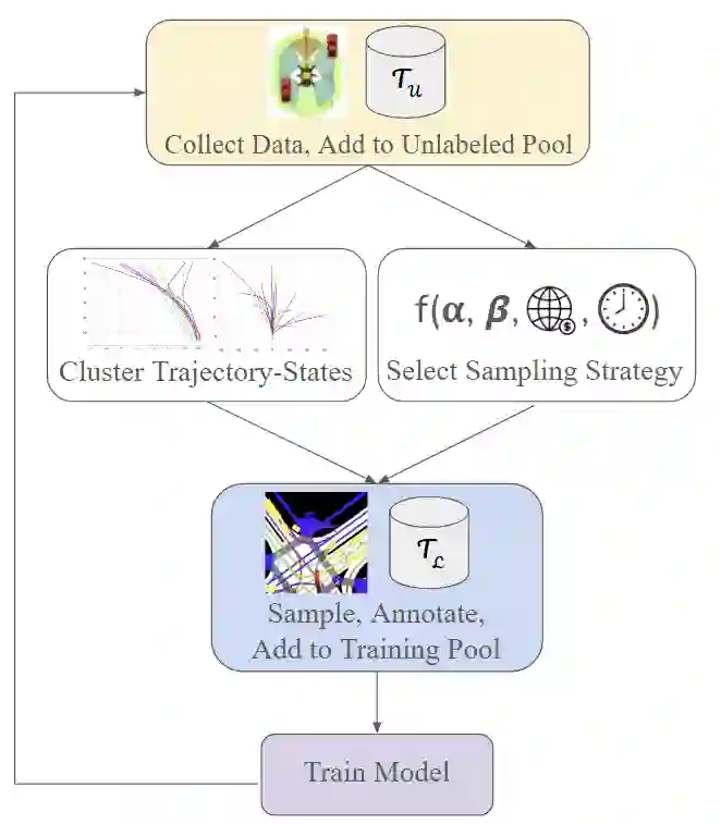 This study investigates the use of trajectory and dynamic state information for efficient data curation in autonomous driving machine learning tasks. We propose methods for clustering trajectory-states and sampling strategies in an active learning framework, aiming to reduce annotation and data costs while maintaining model performance. Our approach leverages trajectory information to guide data selection, promoting diversity in the training data. We demonstrate the effectiveness of our methods on the trajectory prediction task using the nuScenes dataset, showing consistent performance gains over random sampling across different data pool sizes, and even reaching sub-baseline displacement errors at just 50% of the data cost. Our results suggest that sampling typical data initially helps overcome the ''cold start problem,'' while introducing novelty becomes more beneficial as the training pool size increases. By integrating trajectory-state-informed active learning, we demonstrate that more efficient and robust autonomous driving systems are possible and practical using low-cost data curation strategies.