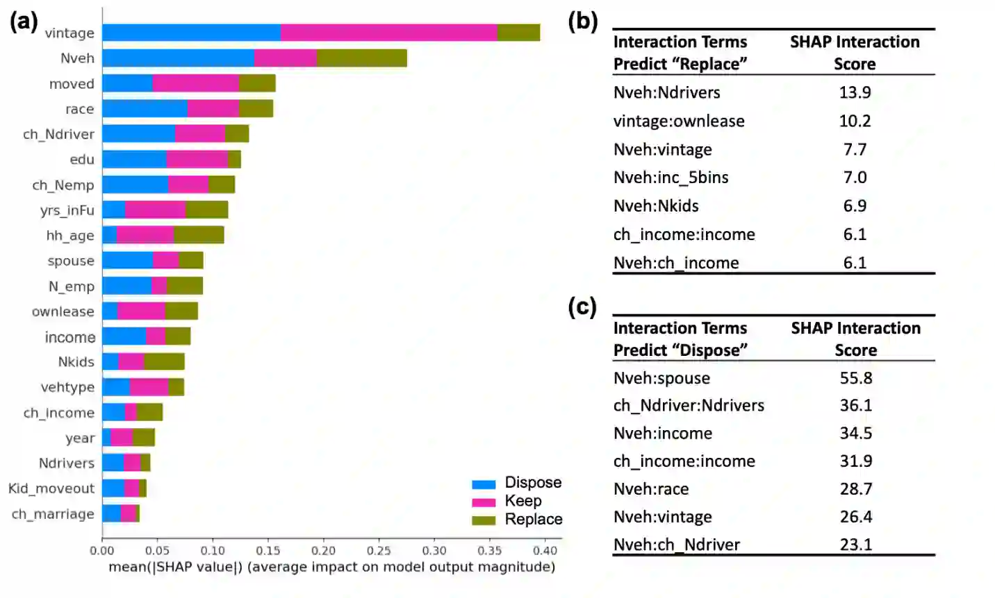 翻译:是什么使你持有这辆旧车? 虽然绝大多数家用车辆仍由常规的内燃机驱动,但采用新兴车辆技术的进展将关键取决于现有车辆何时从家庭车队中转换出来。利用具有国家代表性的纵向数据集,“收入动态小组研究”,本研究审视了家庭如何决定处置或更换特定车辆:(1) 受车辆特性的影响,(2) 由家庭同时的社会经济和经济特征和(3) 由关键生命周期事件引发。与新开发的机器学习解释工具“树开刀”相结合,我们展示了机械学习模式的创新使用,以扩大传统对车的模拟,既能产生行为洞察力,又能改善模型性性能。我们发现两种基于梯速法的方法,即“CatBoost”和“LightGBMM”是这一问题的最佳机器学习模式。多音后勤模型在车辆更换模型规格后可以达到类似的性能水平。 与新开发的机器学习和多音化逻辑模型都表明,虽然更老的车辆的运算模型都更能让家庭更早、更早的车辆更早地掌握或更早的车龄,但我们更早的车龄家庭更能更早地选择。