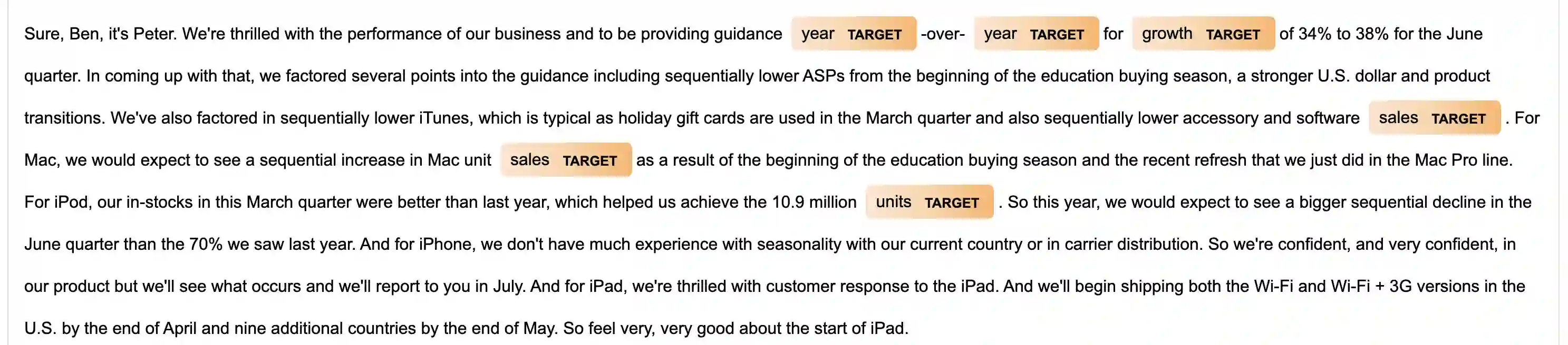 Moving targets -- managers' strategic shifting of key performance metrics when the original targets become difficult to achieve -- have been shown to predict subsequent stock underperformance. However, our work reveals that the method employed in that study exhibits two key limitations that hinder the accuracy -- noise in the extracted targets and loss of contextual information -- both of which stem primarily from the use of a named entity recognition (NER). To address these two limitations, we propose an LLM-based target extraction method with a newly defined metric that better captures semantic context. This approach preserves semantic context beyond simple entity recognition and yields consistently higher predictive power than the original approach. Overall, our approach enhances the granularity and accuracy of financial text-based performance prediction.