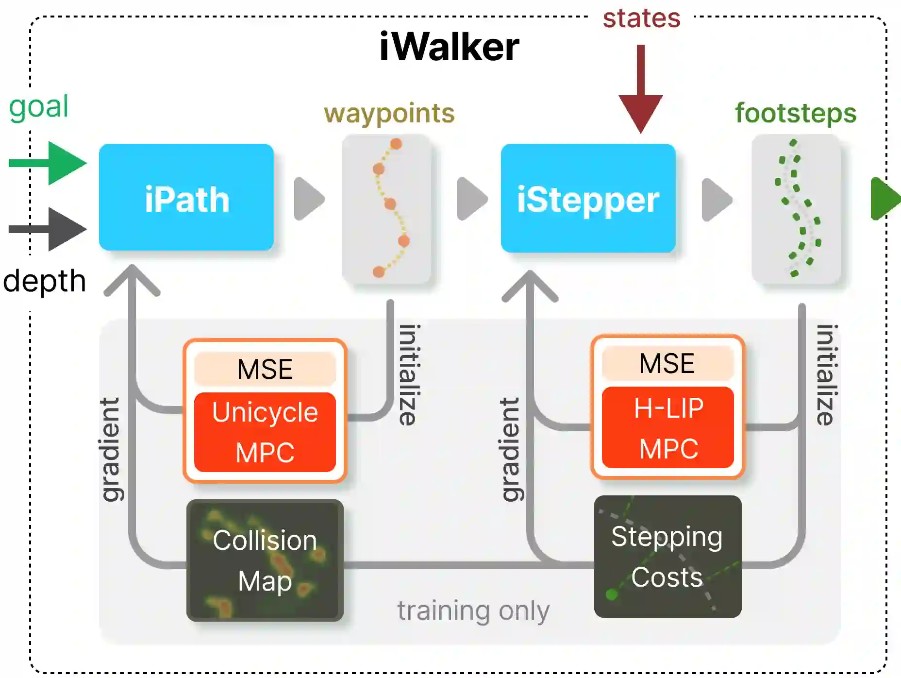 翻译:人形机器人因其在人类设计环境中执行广泛任务的潜力,被视为通用智能体基础的关键载体。在规划与控制方面,尽管传统模型与任务专用方法在过去数十年间已得到广泛研究,但其仍难以实现通用自主性所需的灵活性与多功能性。学习方法(尤其是强化学习)在当下具有强大影响力且备受关注,但其训练过程本质上是“盲目的”——高度依赖仿真环境中的试错,缺乏物理原理或底层动力学的有效指导。为此,我们提出了一种新颖的端到端框架,将感知、规划与基于模型的控制无缝集成于人形机器人行走任务中。我们将该方法命名为iWalker,其核心驱动力为指令式学习——一种自监督的神经符号学习框架。该框架使机器人能够从任意未标注数据中学习,显著提升了适应性与泛化能力。实验表明,iWalker在仿真环境与真实场景中均展现出卓越性能,标志着向多功能自主人形机器人迈出了重要一步。