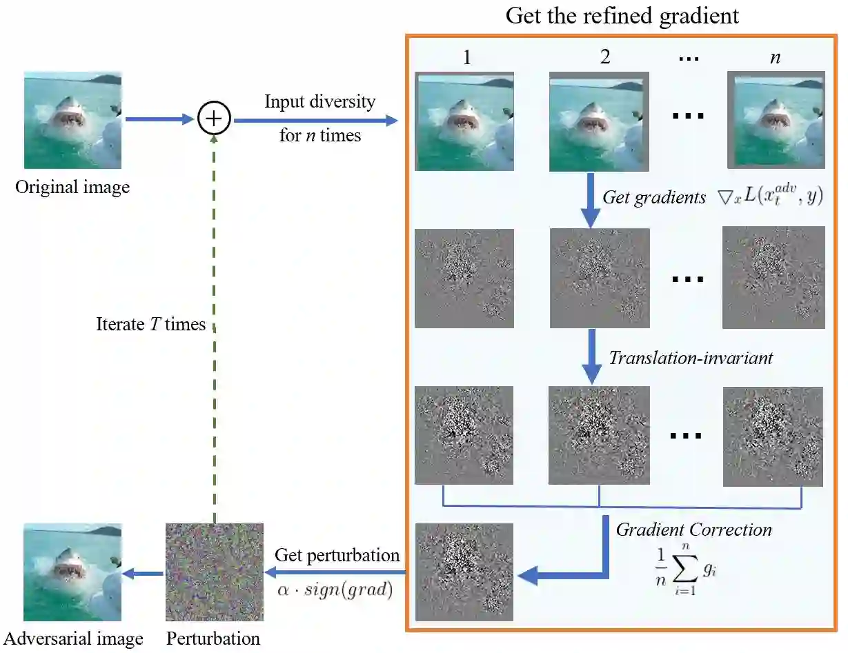 翻译:深心神经网络很容易受到对抗性例子的伤害,这些例子是通过在原始图像中添加人为不易察觉的扰动而设计的。大多数现有的对抗性攻击方法在白箱设置下达到近100%攻击成功率,但在黑箱设置下只达到相对较低的攻击成功率。为了提高黑箱设置的对抗性例子的可转让性,已经提出了几种方法,例如输入多样性、翻译性反动攻击和动力攻击。在本文中,我们提出了一个名为“梯度调整”的方法,它可以通过纠正通过多重变换输入多样性引入的无用的梯度来进一步改善对抗性转移性。我们的方法一般适用于许多基于梯度的攻击方法,加上输入多样性。对图像网络数据集进行了广泛的实验,我们的方法可以达到三种不同模型的平均转移率82.07%,这三种模型以6.0%的平均幅度取代了其他状态的艺术方法。我们还将拟议的方法应用到CVPR 2021 Anrestrab Adversarial攻击队的Adversarial 15Adversaribal 攻击队的Alibal成功率。