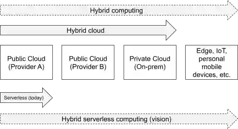 In recent years, there has been a surge in the adoption of serverless computing due to the ease of deployment, attractive pay-per-use pricing, and transparent horizontal auto-scaling. At the same time, infrastructure advancements such as the emergence of 5G networks and the explosion of devices connected to Internet known as Internet of Things (IoT), as well as new application requirements that constrain where computation and data can happen, will expand the reach of Cloud computing beyond traditional data centers into Hybrid Cloud. Digital transformation due to the pandemic, which accelerated changes to the workforce and spurred further adoption of AI, is expected to accelerate and the emergent Hybrid Cloud market could potentially expand to over trillion dollars. In the Hybrid Cloud environment, driven by the serverless tenants there will be an increased need to focus on enabling productive work for application builders that are using a distributed platform including public clouds, private clouds, and edge systems. In this chapter we investigate how far serverless computing can be extended to become Hybrid Serverless Computing.