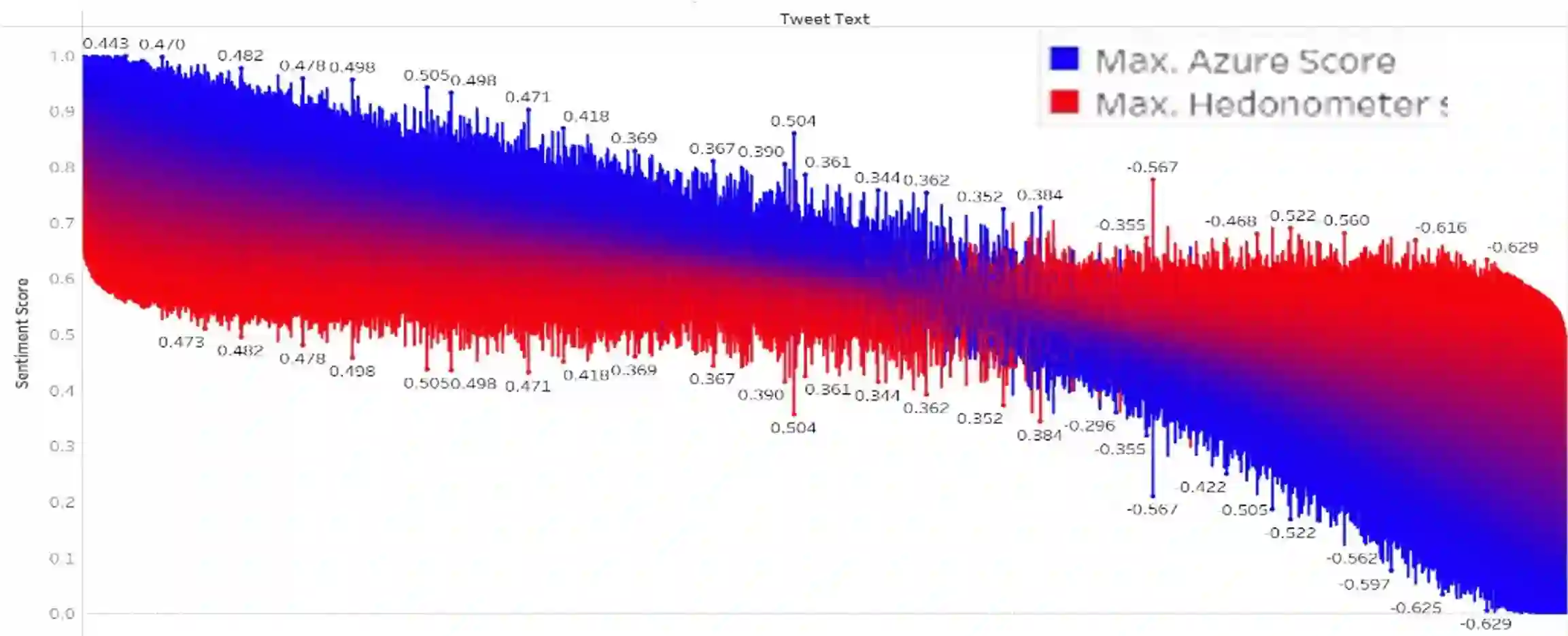 Lexicon-based approaches to sentiment analysis of text are based on each word or lexical entry having a pre-defined weight indicating its sentiment polarity. These are usually manually assigned but the accuracy of these when compared against machine leaning based approaches to computing sentiment, are not known. It may be that there are lexical entries whose sentiment values cause a lexicon-based approach to give results which are very different to a machine learning approach. In this paper we compute sentiment for more than 150,000 English language texts drawn from 4 domains using the Hedonometer, a lexicon-based technique and Azure, a contemporary machine-learning based approach which is part of the Azure Cognitive Services family of APIs which is easy to use. We model differences in sentiment scores between approaches for documents in each domain using a regression and analyse the independent variables (Hedonometer lexical entries) as indicators of each word's importance and contribution to the score differences. Our findings are that the importance of a word depends on the domain and there are no standout lexical entries which systematically cause differences in sentiment scores.