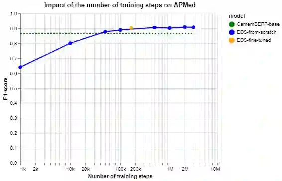 翻译:使用现实世界数据的背景临床研究可能受益于利用临床报告,这是一个特别丰富但非结构化的媒介。为此,自然语言处理可以提取相关信息。基于培训前语言模型的转让学习方法,在大多数NLP应用中取得了最新成果;然而,公开使用的模式缺乏特殊语言,特别是在医疗领域。我们的目的是评估将语言模型改用法国下游医学NLP任务临床报告的影响。我们利用了2017年8月至2021年7月在大巴黎大学医院(APHP)收集的21M临床报告,以生成两个特殊语言的CamembERT结构:一个从零开始重新训练,另一个在初始化时使用CamembERT。我们用两个法文附加说明的医疗数据集来比较我们的语言模型与原CamemBERT网络,评估改进与Wilcoxon少数测试的统计意义。我们在临床报告中提前增加了AMPM(APH特定特殊任务)的平均F1级临床报告,从最初的Servicialalality 开始将业绩提升为91 %。我们从统计前的升级前的统计结果也显示了我们先前的成绩。我们以前的Serverealal-ral-ralal的改进了我们从最初的成绩,从最初的PB的改进到实际的成绩。我们从最初的改进为91。