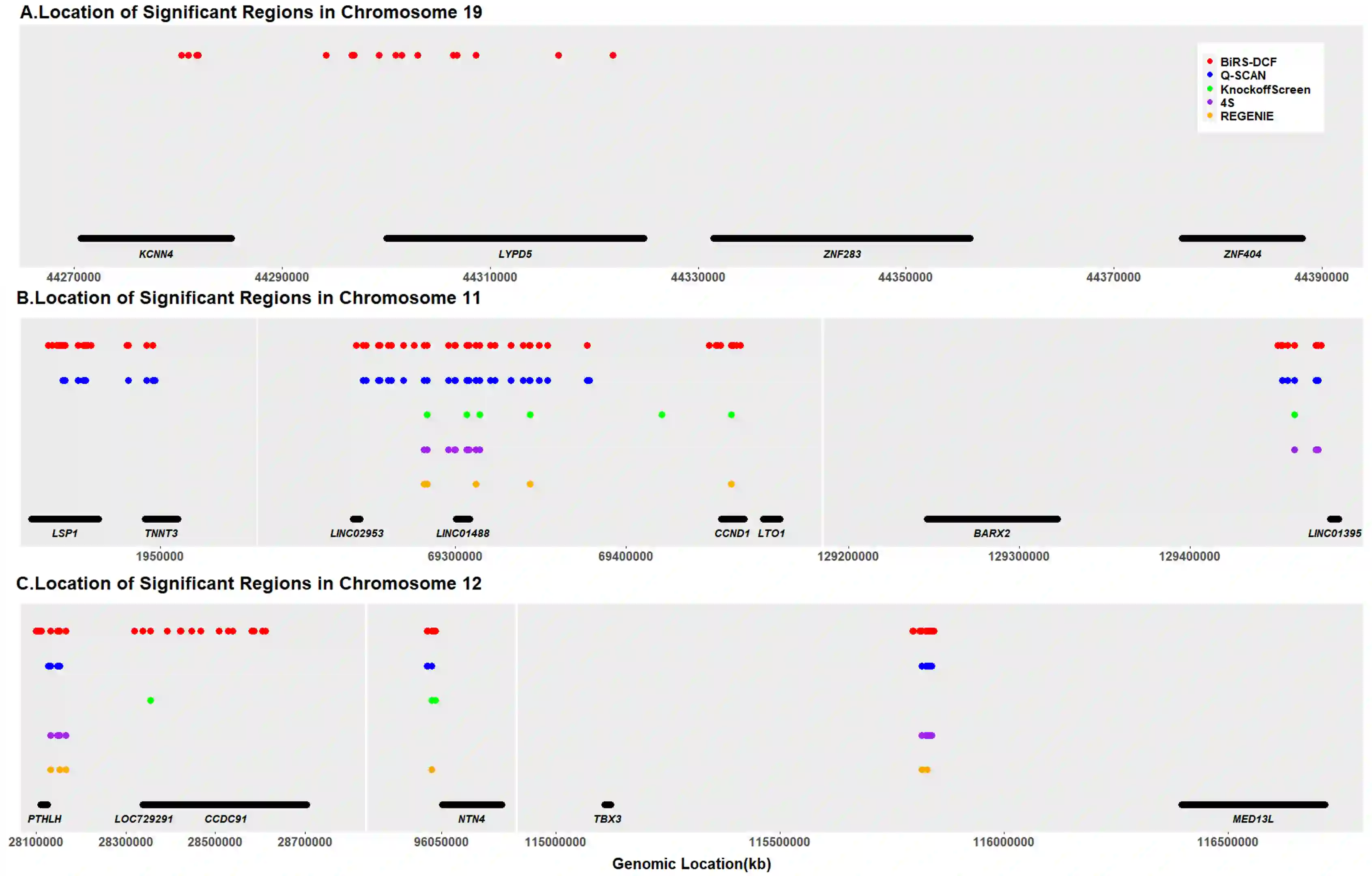 Research on the localization of the genetic basis associated with diseases or traits has been widely conducted in the last a few decades. Scan methods have been developed for region-based analysis in whole-genome association studies, helping us better understand how genetics influences human diseases or traits, especially when the aggregated effects of multiple causal variants are present. In this paper, we propose a fast and effective algorithm coupling with high-dimensional test for simultaneously detecting multiple signal regions, which is distinct from existing methods using scan or knockoff statistics. The idea is to conduct binary splitting with re-search and arrangement based on a sequence of dynamic critical values to increase detection accuracy and reduce computation. Theoretical and empirical studies demonstrate that our approach enjoys favorable theoretical guarantees with fewer restrictions and exhibits superior numerical performance with faster computation. Utilizing the UK Biobank data to identify the genetic regions related to breast cancer, we confirm previous findings and meanwhile, identify a number of new regions which suggest strong association with risk of breast cancer and deserve further investigation.