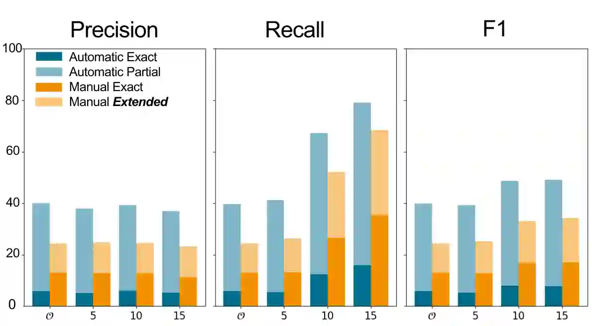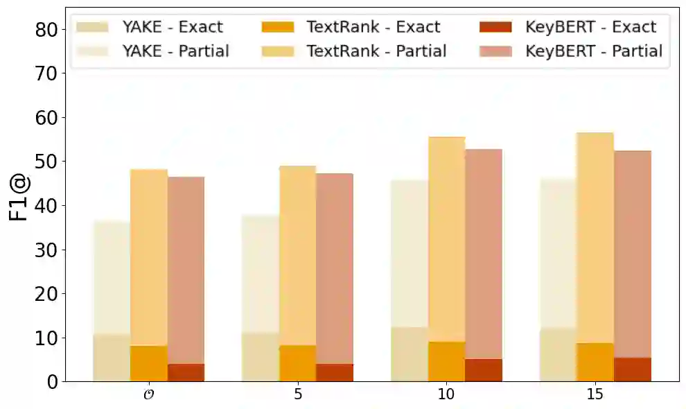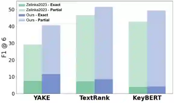 翻译:针对形态丰富、资源稀缺语言的关键词提取研究仍显不足,这主要源于缺乏合适的评估数据集。本研究针对斯洛伐克语填补了这一空白,通过构建包含227,432篇科学摘要及作者标注关键词的数据集——数据采集自斯洛伐克学位论文中央注册系统并经系统化清洗——其规模达到先前最大斯洛伐克语资源的25倍,并接近KP20K等成熟英语基准数据集的体量。基于该数据集,我们对三种无监督基线方法(YAKE、TextRank、采用SlovakBERT嵌入的KeyBERT)进行了基准测试,并评估了使用GPT-3.5-turbo的大型语言模型提取方法KeyLLM。无监督基线方法在精确匹配$F1@6$指标上最高仅达到11.6%,与部分匹配结果(最高51.5%)存在显著差距,这反映了屈折变化的表层形式与作者标注关键词之间的匹配难度。KeyLLM有效缩小了精确匹配与部分匹配间的差距,生成的关键词更接近作者标注的规范形式;同时基于100篇文档的人工评估($κ=0.61$)证实,KeyLLM能捕捉到自动化精确匹配所低估的相关概念。我们的分析指出形态失配是统计方法的主要失效模式——这一发现对其他屈折语言同样具有参考价值。数据集(https://huggingface.co/datasets/NaiveNeuron/SlovKE)与评估代码(https://github.com/NaiveNeuron/SlovKE)已公开发布。