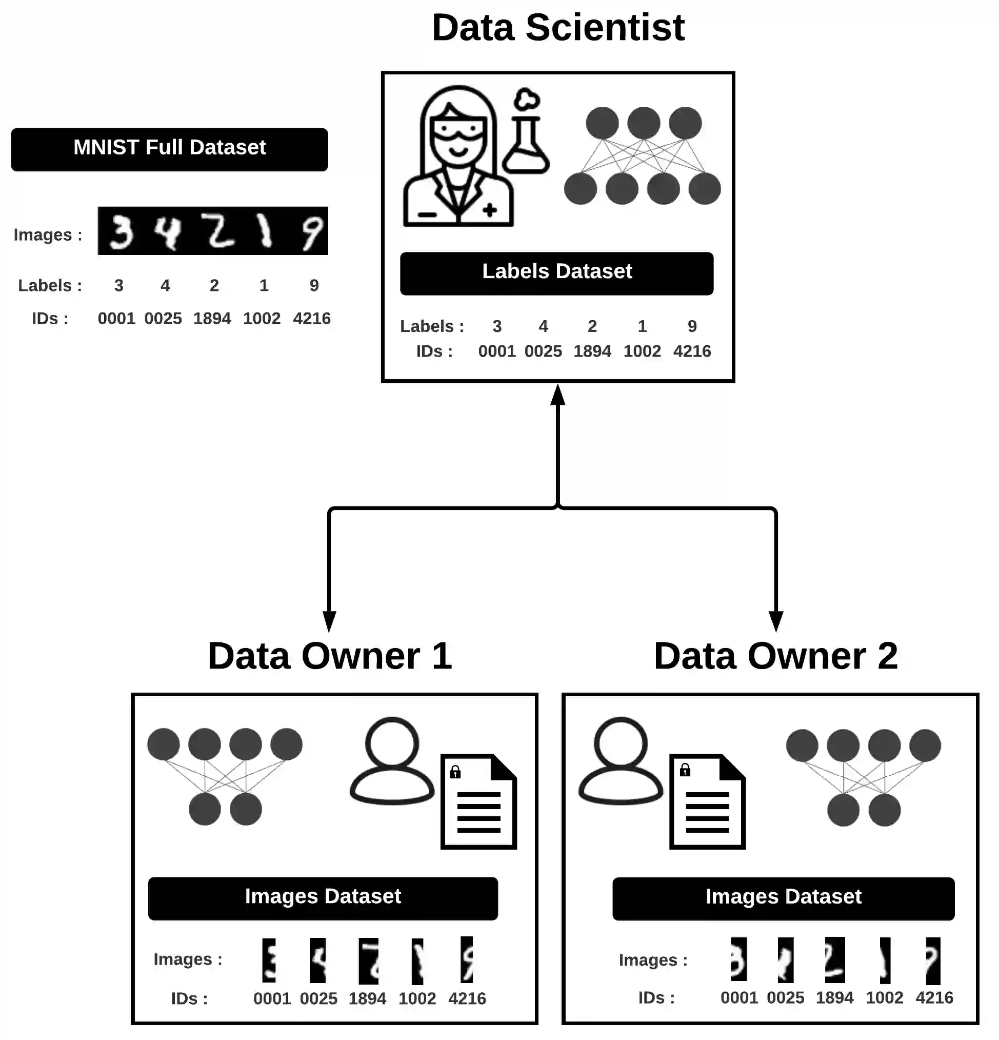 翻译:我们引入了支持利用分裂神经网络进行纵向联合学习的框架PyVertic。拟议框架允许数据科学家对神经网络进行关于数据特征的培训,数据特征在多个所有者之间垂直分割,同时保留所有者设备上的原始数据。为了将不同数据集分区共享的实体联系起来,我们在与数据点相关的身份识别上使用私自设置交叉路段。为了证明拟议框架的有效性,我们介绍了为MNIST分类任务培训一个简单的双头分裂神经网络,数据样本垂直分布在两个数据所有者和一位数据科学家之间。