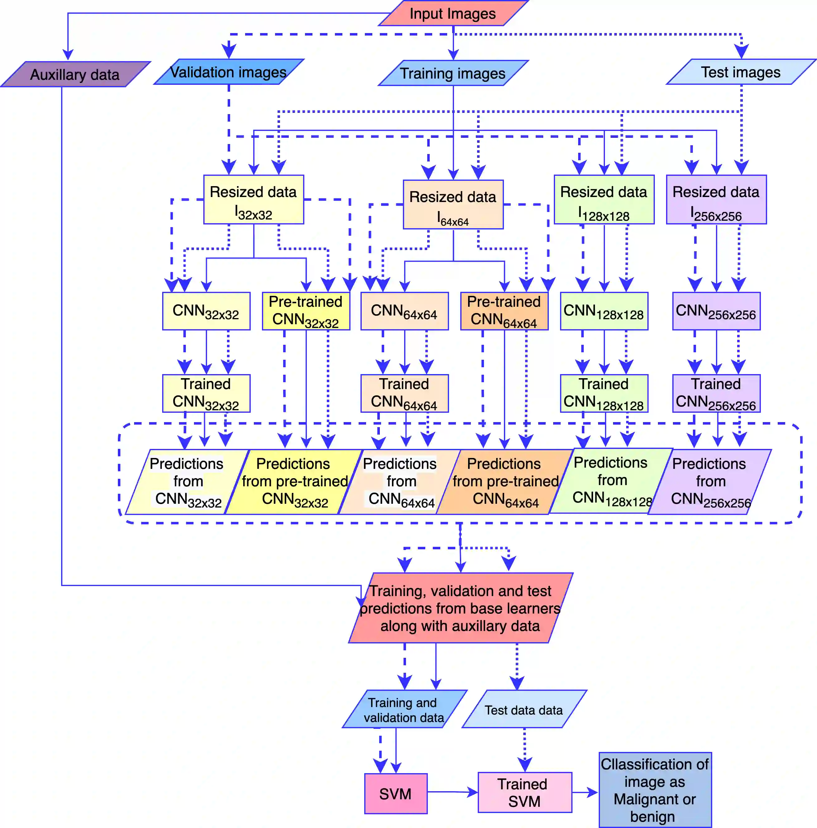 翻译:早期诊断在防治皮肤癌方面发挥着关键作用。报告了从医疗图像中准确分类皮肤癌的数种机器学习技术,其中许多技术都是基于预先培训的神经神经网络(CNNs),能够根据数量有限的培训数据对模型进行培训。然而,这些模型的分类准确性仍然由于恶性肿瘤具有代表性的图像很少而受到严重限制。我们建议建立一个新型的以共同点为基础的CNN结构,其中多个CNN模型(其中一些是预先培训的,有些仅对手头的数据进行了培训)与患者信息(元数据)相结合,同时使用元Learner(元数据),拟议的方法提高了模型处理稀缺、不平衡数据的能力。我们展示了使用具有2000年病人33126德温相图像的数据集的拟议技术的好处。我们从F1计量、ROC曲线(AUSC-ROC)和PR曲线下区域(AUC-PRO-P)下的拟议技术的性能,并与7种不同基准方法进行比较,包括最近以CNN-RRRA为基准的A3,所有以10美元为基准的技术。我们评估了拟议的两种方法。