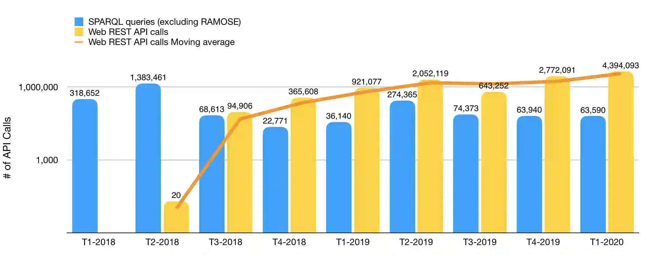 Semantic Web technologies are widely used for storing RDF data and making them available on the Web through SPARQL endpoints, queryable using the SPARQL query language. While the use of SPARQL endpoints is strongly supported by Semantic Web experts, it hinders broader use of RDF data by common Web users, engineers and develop-ers unfamiliar with Semantic Web technologies, who normally rely on Web RESTful APIs for querying Web-available data and creating applications over them. To solve this problem, we have developed RAMOSE, a generic tool developed in Python to create REST APIs over SPARQL endpoints, through the creation of source-specific textual configuration files which enable the querying of SPARQL endpoints via simple Web RESTful API calls that return either JSON or CSV-formatted data, thus hiding all the intrinsic complexities of SPARQL and RDF from common Web users. We provide evidence that the use of RAMOSE to provide REST API access to RDF data within OpenCitations triplestores is beneficial in terms of the number of queries made by external users to such RDF data using the RAMOSE API compared with the direct access via the SPARQL endpoint. Our findings prove the importance for suppliers of RDF data of having an alternative API access service, which enables its use by those with no (or little) experience in Semantic Web technologies and the SPARQL query language. RAMOSE can be used both to query any SPARQL endpoint and to query any other Web API, and thus it represents an easy generic technical solution for service providers who wish to create an API service to access Linked Data stored as RDF in a conventional triplestore.