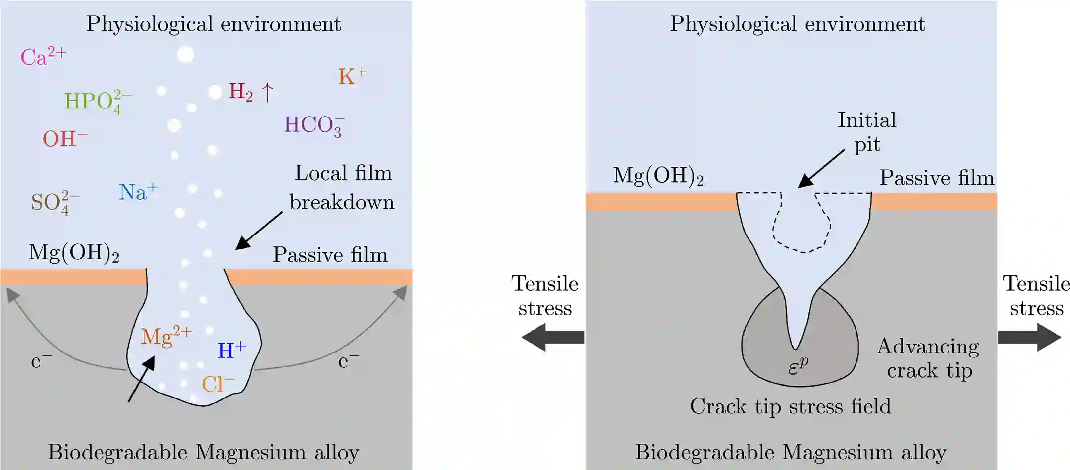A phase-field model is developed to simulate the corrosion of Mg alloys in body fluids. The model incorporates both Mg dissolution and the transport of Mg ions in solution, naturally predicting the transition from activation-controlled to diffusion-controlled bio-corrosion. In addition to uniform corrosion, the presented framework captures pitting corrosion and accounts for the synergistic effect of aggressive environments and mechanical loading in accelerating corrosion kinetics. The model applies to arbitrary 2D and 3D geometries with no special treatment for the evolution of the corrosion front, which is described using a diffuse interface approach. Experiments are conducted to validate the model and a good agreement is attained against in vitro measurements on Mg wires. The potential of the model to capture mechano-chemical effects during corrosion is demonstrated in case studies considering Mg wires in tension and bioabsorbable coronary Mg stents subjected to mechanical loading. The proposed methodology can be used to assess the in vitro and in vivo service life of Mg-based biomedical devices and optimize the design taking into account the effect of mechanical deformation on the corrosion rate. The model has the potential to advocate further development of Mg alloys as a biodegradable implant material for biomedical applications.