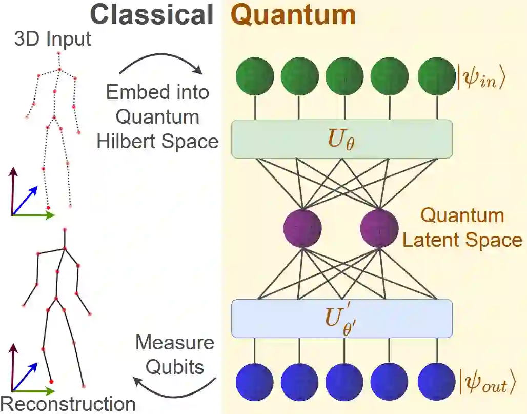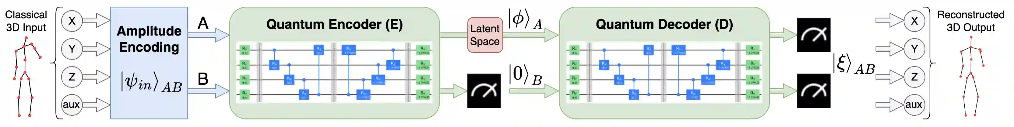 Existing methods for learning 3D representations are deep neural networks trained and tested on classical hardware. Quantum machine learning architectures, despite their theoretically predicted advantages in terms of speed and the representational capacity, have so far not been considered for this problem nor for tasks involving 3D data in general. This paper thus introduces the first quantum auto-encoder for 3D point clouds. Our 3D-QAE approach is fully quantum, i.e. all its data processing components are designed for quantum hardware. It is trained on collections of 3D point clouds to produce their compressed representations. Along with finding a suitable architecture, the core challenges in designing such a fully quantum model include 3D data normalisation and parameter optimisation, and we propose solutions for both these tasks. Experiments on simulated gate-based quantum hardware demonstrate that our method outperforms simple classical baselines, paving the way for a new research direction in 3D computer vision. The source code is available at https://4dqv.mpi-inf.mpg.de/QAE3D/.