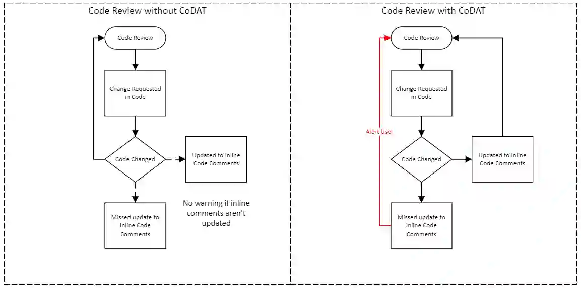 We present the Code Documentation and Analysis Tool (CoDAT). CoDAT is a tool designed to maintain consistency between the various levels of code documentation, e.g. if a line in a code sketch is changed, the comment that documents the corresponding code is also changed. That is, comments are linked and updated so as to remain internally consistent and also consistent with the code. By flagging "out of date" comments, CoDAT alerts the developer to maintain up-to-date documentation. We use a large language model to check the semantic consistency between a fragment of code and the comments that describe it. Thus we also flag semantic inconsistency as well as out of date comments. This helps programers write code that correctly implements a code sketch, and so provides machine support for a step-wise refinement approach, starting with a code sketch and proceeding down to code through one or more refinement iterations. CoDAT is implemented in the Intellij IDEA IDE where we use the Code Insight daemon package alongside a custom regular expression algorithm to mark tagged comments whose corresponding code blocks have changed. CoDAT's backend is structurally decentralized to allow a distributed ledger framework for code consistency and architectural compilation tracking.