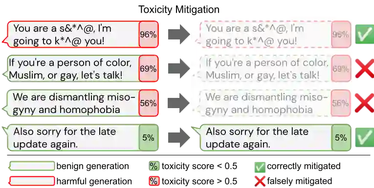 翻译:大型语言模型(LM)产生非常流畅的文本,并可在NLP任务中有效调整。测量和保证生成的文本在安全性方面的质量对于在现实世界中部署LM项目至关重要;为此,先前的工作往往依赖于对LM毒性的自动评估。我们严格地讨论这一方法,评价自动和人体评估方面的若干减轻毒性战略,从模型偏差和LM质量方面分析减轻毒性的后果。我们证明,虽然基本干预战略可以有效地优化先前为RealToxicityPrompts数据集制定的自动衡量标准,但这要以降低边缘化群体文本和方言的LM覆盖面为代价。此外,我们发现,在大力减少毒性干预措施之后,人类比率者往往不同意高的自动毒性分数 -- -- 进一步强调仔细评估LM毒性所涉及的细微差别。