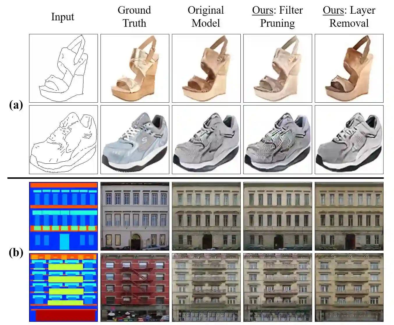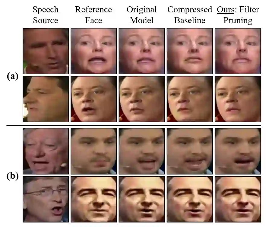 翻译:有效压缩压压超分化模型。 尽管对歧视模型的修剪方法非常成功, 但相对而言很少采用这些方法来应用基因模型。 本研究对有条件GANs的 U-Net 生成器进行结构化的修剪。 一次层次敏感度分析证实,在瓶颈附近的最深层存在许多不必要的过滤器, 并且可以大量修剪。 基于这一观察, 我们将这些过滤器从多个内部层中提取出来, 或者通过完全清除这些层来建议替代结构。 我们用 Pix2Pix 来评估图像到模拟翻译的方法, 和用Wav2Lip 来评估语音驱动的面部话语生成的方法。 我们的方法优于全球修剪基准, 表明适当考虑如何为 U- Net 生成器进行普鲁纳的重要性 。
