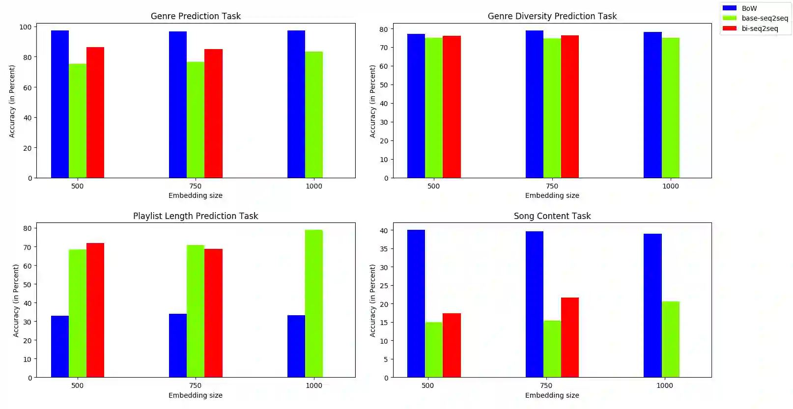 翻译:由于基于数字云的服务,例如Spotify、Pandora、Apple Music等,播放列表已经成为我们监听经历的一个重要部分。由于播放列表的使用率的暴增,建议播放列表对今天的音乐服务至关重要。虽然在播放列表预测方面做了大量工作,但播放列表的展示领域没有受到如此关注。过去几年来,顺序到顺序模型,特别是在自然语言处理领域,展示了在捕捉序列的语义特征方面学到的嵌入器的有效性。我们可以对音乐应用类似的概念来学习播放列表的固定长度表达方式,并将这些表达方式用于下游任务,例如播放列表的发现、浏览和建议。在这项工作中,我们以不受监督的方式设计学习固定长度播放列表的问题,使用序列到顺序(Seq2seq)模型,将播放列表作为句子和歌曲词词句解释。我们将我们的模式与其他两个基本编码结构进行比较。我们用一个套式任务来评估我们的工作,用一个套式任务来评估其常规任务 — 套式任务,用一个套式任务来评估游戏任务,用一个套式任务来评估常用的任务。