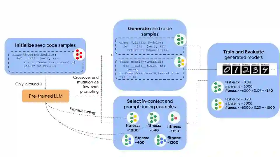 翻译:鉴于最近生成代码的语言模型(LMS)取得了令人印象深刻的成就,我们探索了使用LMS作为适应性突变和交叉操作操作者来进行进化神经结构搜索算法。虽然NAS仍然证明对于LMS来说一项任务过于困难,无法仅仅通过推动而取得成功,但我们发现,进化快速工程与软快速调相结合,这是一种我们称为EvoPrompting(EvoPPrompting)的方法,始终发现不同和高性能的模型。我们首先证明EvoPrompting(EvoPrompting)对于计算高效的MNIST-1D数据集是有效的,在这个数据集中,EvoPrompting(EvoPrompting)生成的演化式结构变异于由人类专家设计的变异体,在精确性和模型大小方面却鲜少见的提示。我们随后运用了我们的方法在CLRS Algorithmical Excalogising Bram) 基准上搜索图形神经网络网络网络网络。Evopress reforal commastrical redustrations redustrations for an lating dust for ful suble made dust betradustruble made dust bestrublestrual tradustrual sublestrations</s>