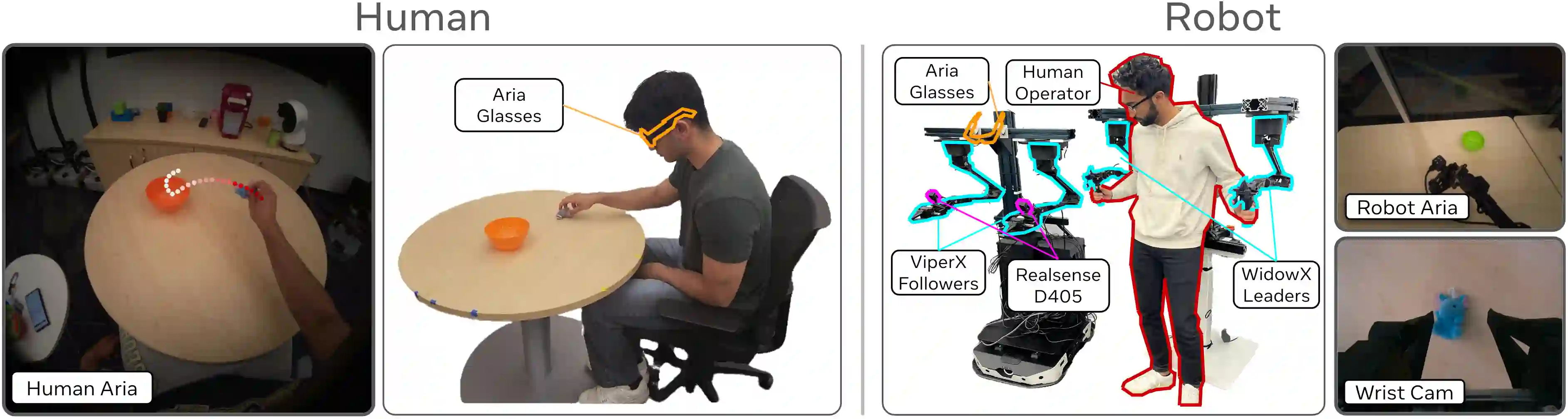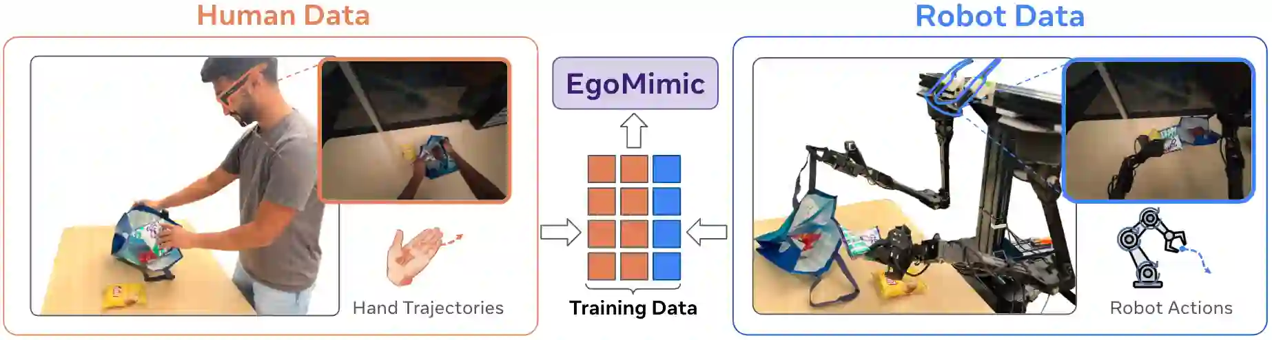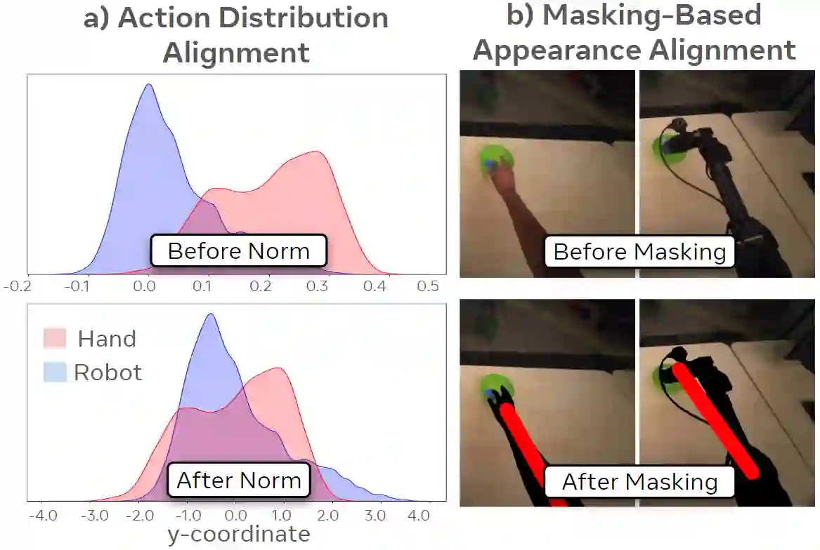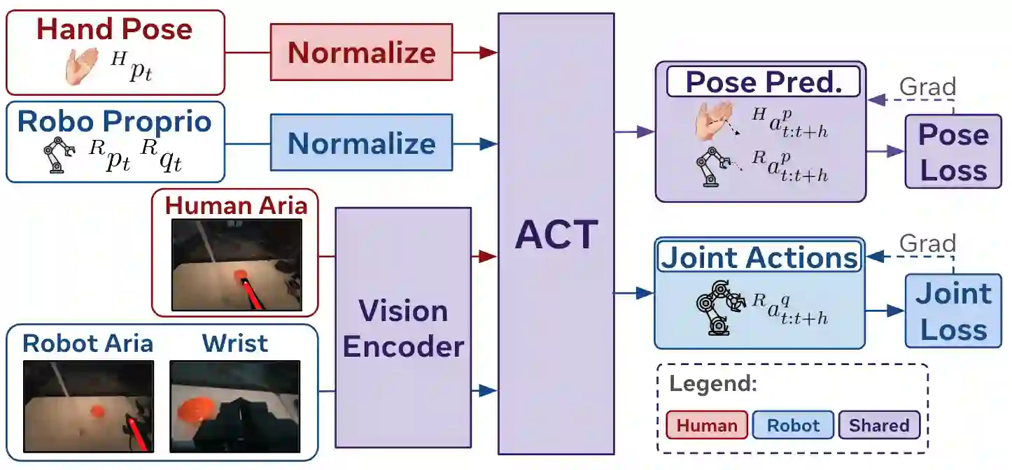 翻译:模仿学习所需演示数据的规模与多样性是一个重大挑战。我们提出了EgoMimic,这是一个全栈框架,通过人类具身数据(具体而言是结合了3D手部追踪的第一人称人类视频)来扩展操作任务的规模。EgoMimic通过以下方式实现这一目标:(1) 一个使用符合人体工程学的Project Aria眼镜来采集人类具身数据的系统,(2) 一个成本低廉的双臂机械手,其最小化了与人类数据之间的运动学差距,(3) 跨领域数据对齐技术,以及(4) 一种在人类数据和机器人数据上协同训练的模仿学习架构。与先前仅从人类视频中提取高层意图的工作相比,我们的方法将人类数据和机器人数据平等地视为具身演示数据,并从这两个数据源中学习一个统一的策略。在一系列多样化的长时程、单臂和双臂操作任务上,EgoMimic相比最先进的模仿学习方法取得了显著改进,并能泛化到全新的场景。最后,我们展示了EgoMimic一个有利的扩展趋势:增加1小时额外的手部数据比增加1小时额外的机器人数据价值显著更高。视频和更多信息可在 https://egomimic.github.io/ 找到。