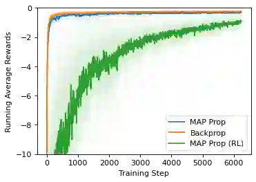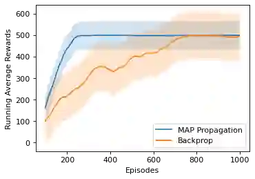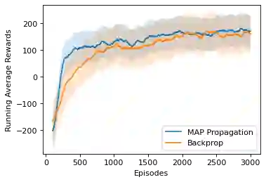 翻译:最先进的深层次学习算法大多依赖梯度回路变换法来训练深层人工神经网络,通常认为这种神经网络在生物学上是难以置信的。对于一个受过强化学习任务或监督学习任务训练的随机单元网络来说,一种生物学上可行的学习方式就是由REINFORCE来训练每个单元。在这个案例中,只有全球奖励信号才需要向所有单元广播,而所提供的学习规则是当地性的,这可以被解释为在生物学上观测到的奖励性调制悬浮依赖性塑料(R-STDP),虽然这种学习规则遵循回报的梯度,但它存在很大的差异,无法用于在实践上训练深层次的网络。在这个文件中,我们建议一种叫作MAP传播的算法,可以大大减少这种差异,同时保留当地学习规则的特性。不同于以前关于地方学习规则的工作(例如对比性变异性变异性),它通常适用于非定向的模型,在不统一学习任务中,我们提议的算法适用于在强化学习任务时指导模型。我们表明,新提议的演算法可以加强新的演算系统,在学习速度时可以解决共同任务。