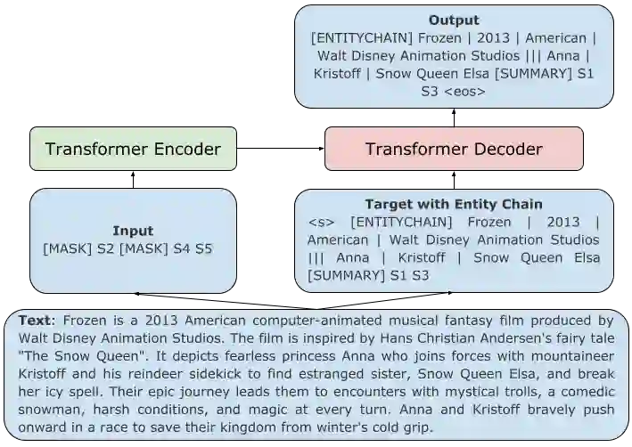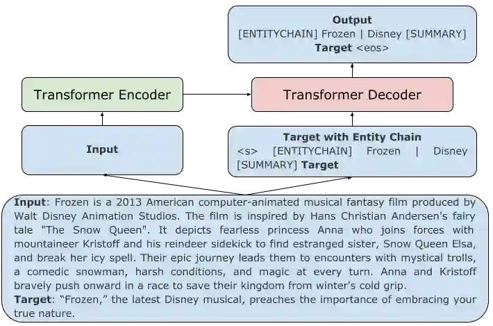 翻译:培训前的基于变压器的顺序到顺序模型已成为许多文本生成任务(包括总结)的通向解决方案,但是,这些模型产生的结果往往含有幻觉和不相关段落等重要问题。缓解这些问题的一个解决办法是将更好的内容规划纳入神经总结中。我们提议利用实体链(即摘要中提到的实体链链)更好地规划和开始生成抽象摘要。我们特别通过将目标与实体链一起设定来扩大目标。我们试验了培训前和对内容规划目标的微调。在对CNN/DailyMail、SAMSum和XSum进行评价时,将经过培训的模型改进为实体的正确性和简洁性,并在ROUGE上为SAMSum和XSum实现最先进的业绩。