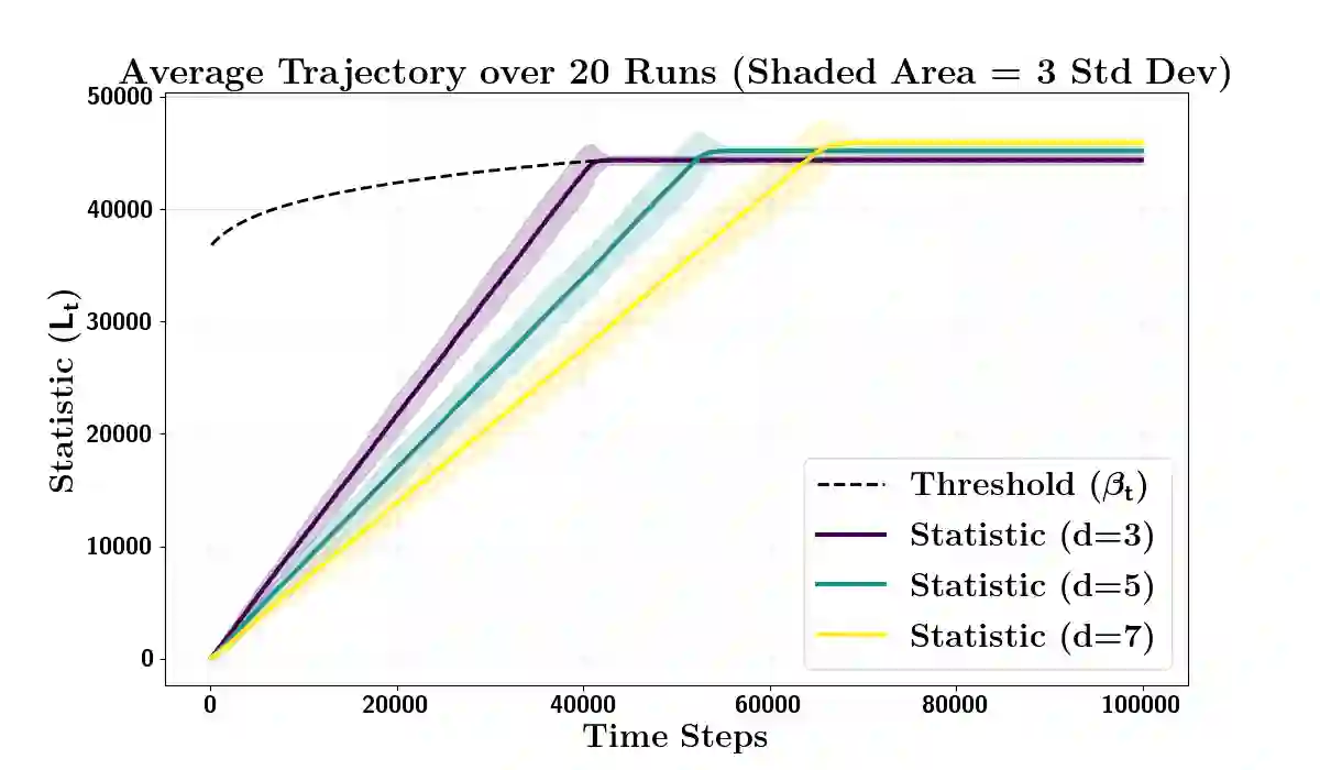 翻译:我们研究了由遍历马尔可夫链生成数据的单边与$α$正确序贯假设检验问题。零假设为未知转移矩阵属于一个给定的随机矩阵集合$P$,备择假设则对应一个与之不相交的集合$Q$。我们建立了一个紧的非渐近、实例相关的下界,该下界适用于备择假设下任何有效序贯检验的期望停止时间。我们新颖的分析改进了现有下界,后者在此设定下要么是渐近的,要么被证明是次优的。我们的下界同时包含了由未知马尔可夫链诱导的平稳分布与转移结构。我们进一步提出了一种最优检验,其期望停止时间在$α\to 0$时渐近匹配该下界。我们通过两个应用展示了所提框架的实用性:马尔可夫链蒙特卡洛中模型误设的序贯检测,以及马尔可夫决策过程中转移动态线性等结构性质的检验。我们的研究结果为马尔可夫相依性下的最优序贯检验程序提供了一个精确且普适的表征。