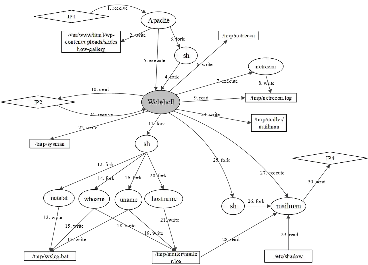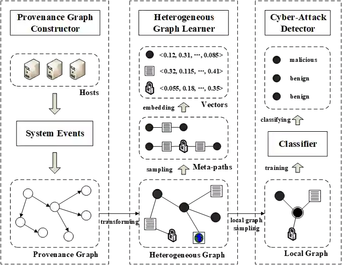 翻译:网络攻击是有经验的黑客恶意地试图破坏目标信息系统的网络攻击。通常,网络攻击被定性为混合TTP(战术、技术和程序)和长期对抗行为,使传统的入侵探测方法无效。大多数现有的网络攻击探测系统是根据人工设计的规则,参照域知识(例如威胁模型、威胁情报等)实施的。然而,这一过程缺乏情报和概括性能力。为了达到这一限制,本文提议根据来源数据,采用智能网络攻击探测方法。为了切实有效地探测出处数据中大量系统事件造成的网络攻击,我们首先用一个混合图来模拟出处数据,以捕捉每个系统实体的丰富背景信息(例如流程、档案、套接头等),并学习每个系统实体的语义性矢量代表。然后,我们通过取样一个小型和紧凑的本地图表进行网络攻击探测,并将关键系统实体分类为恶意或良性。我们首先用一个混合图来模拟出源数据数据数据数据数据数据数据数据数据数据数据,以获取基于两种网络探测方法的测试结果。我们根据两个网络探测模型进行了一系列实验。我们用两个网络探测模型来试验,以测试了基于其他实验方法的测试结果学习。