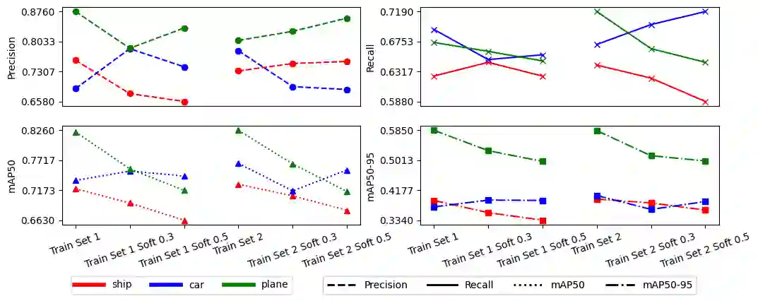 翻译:图像分类中的软标签是图像真实分类的矢量表示 。 在本文中, 我们调查卫星物体探测背景下的软标签 。 我们建议使用检测作为软标签新数据集的基础 。 创建高质量模型的大部分努力正在收集和说明培训数据 。 如果我们能够使用模型为我们生成数据集, 我们不仅可以快速创建数据集, 还可以补充现有的开放源数据集 。 我们使用 xVView 数据集的一个子集, 我们训练一个 YOLOv5 模型来检测汽车、 飞机和船只 。 然后我们用该模型为第二个培训组生成软标签, 然后我们培训和比较原始模型。 我们显示软标签可以用来培训一个几乎与原始数据培训模型一样准确的模型 。