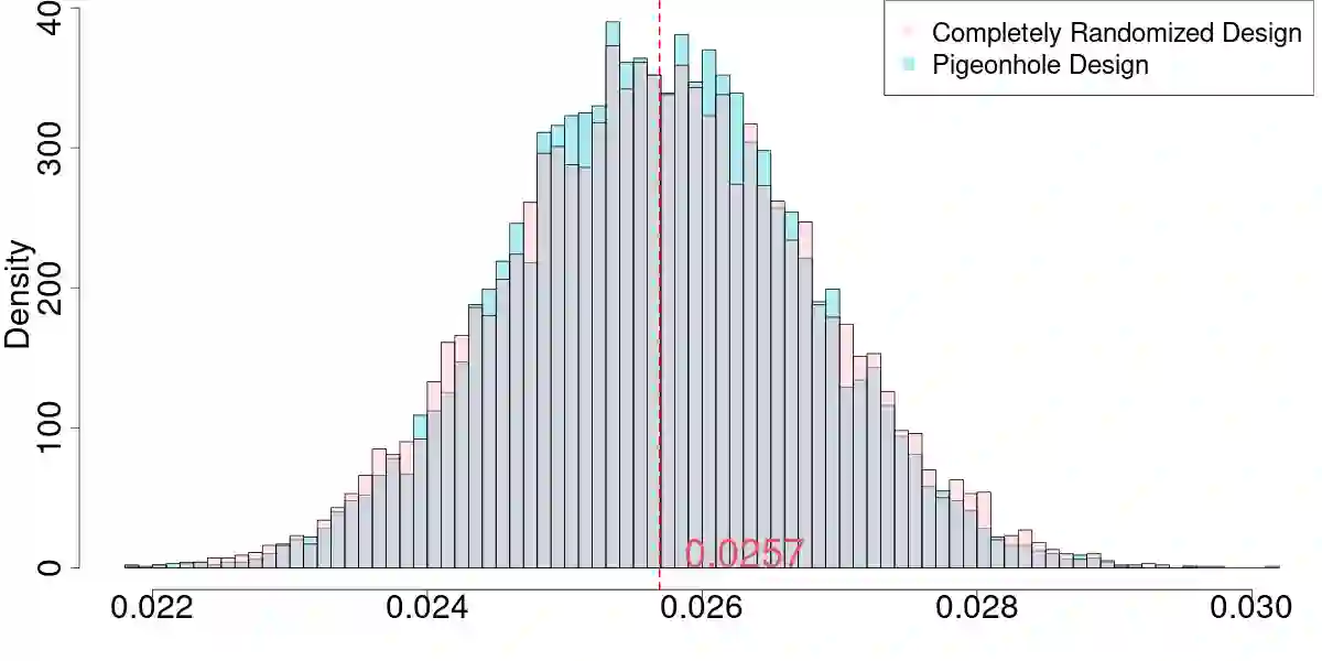 Practitioners and academics have long appreciated the benefits of covariate balancing when they conduct randomized experiments. For web-facing firms running online A/B tests, however, it still remains challenging in balancing covariate information when experimental subjects arrive sequentially. In this paper, we study an online experimental design problem, which we refer to as the "Online Blocking Problem." In this problem, experimental subjects with heterogeneous covariate information arrive sequentially and must be immediately assigned into either the control or the treated group. The objective is to minimize the total discrepancy, which is defined as the minimum weight perfect matching between the two groups. To solve this problem, we propose a randomized design of experiment, which we refer to as the "Pigeonhole Design." The pigeonhole design first partitions the covariate space into smaller spaces, which we refer to as pigeonholes, and then, when the experimental subjects arrive at each pigeonhole, balances the number of control and treated subjects for each pigeonhole. We analyze the theoretical performance of the pigeonhole design and show its effectiveness by comparing against two well-known benchmark designs: the match-pair design and the completely randomized design. We identify scenarios when the pigeonhole design demonstrates more benefits over the benchmark design. To conclude, we conduct extensive simulations using Yahoo! data to show a 10.2% reduction in variance if we use the pigeonhole design to estimate the average treatment effect.