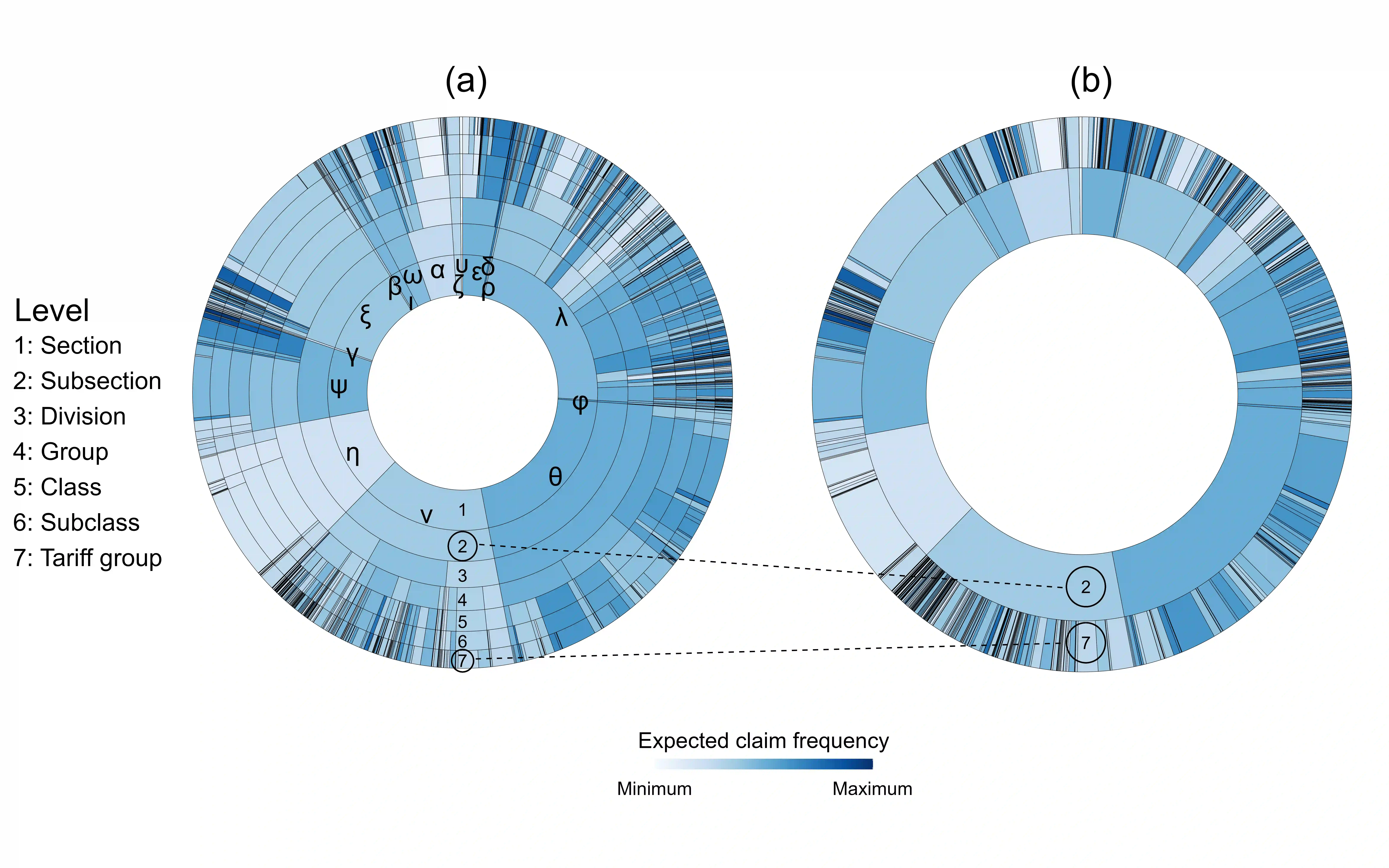 翻译:处理具有大量类别的名义协变量对于统计和机器学习技术都具有挑战性,特别是当名义变量具有分层结构时更加困难。工伤赔偿保险产品中的行业代码正是一个典型的例子。我们通常依靠随机效应方法(Campo和Antonio,2023)来将这些协变量纳入预测模型。然而,在某些情况下,即使随机效应方法也可能遇到估计问题。我们提出了数据驱动的划分分层风险因素自适应自上而下(PHiRAT)算法,将分层结构风险因素减少到其实质,通过将每个层次中类似的类别分组。我们从上而下工作,设计了几个特征来描述层次结构的特定级别中类别的概况。在我们的工伤赔偿案例研究中,我们通过其观察到的损害率和索赔频率来表征行业的风险概况。此外,我们使用嵌入(Mikolov等,2013; Cer等,2018)来编码被保险公司的经济活动的文本描述。然后将这些特征用作输入,用聚类算法将类似的类别分组。我们证明了我们的方法大大减少了类别数量,并导致一个可推广到样本外数据的分组。此外,当将所研究的保险产品的技术保费估计作为分组分层风险因素的函数时,我们获得了更好的高风险和低风险公司之间的区分。