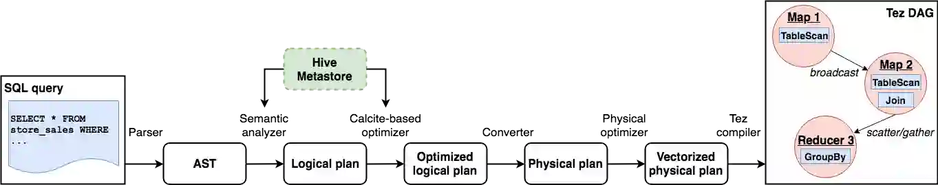 翻译:Apache Hive是一个用于分析大数据工作量的开放源码关系数据库系统。本文描述了从批量工具到完全成熟的企业数据仓储系统的关键创新。我们提出了一个混合结构,将传统的MPP技术与最新的大数据和云层概念结合起来,以实现今天的分析应用程序所要求的规模和性能。我们通过详细说明四个主轴:交易、优化、运行时间和联邦,来探索这个系统。然后我们提供实验结果,以显示系统在典型工作量方面的性能,并以社区路线图结束。