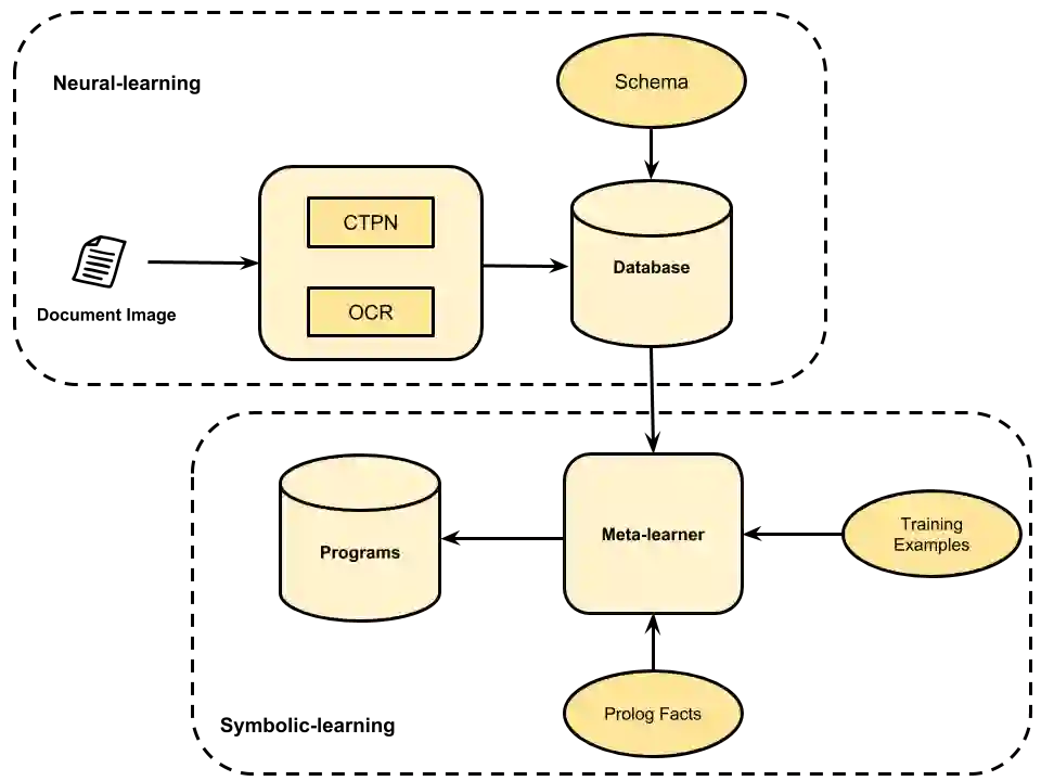 翻译:我们对本文的兴趣在于满足了工业对从发票、账单、收据等文件图像中提取信息的迅速增长的工业需求。在实践中,用户能够提供数量很少的带有需要提取的信息的示例图像。我们采用了一种新型的双层神经诱导性方法,即(a) 我们使用经过预先训练的深层神经网络,用每个文件图像的事实来填充关系数据库;以及(b) 我们使用一种推理,即与过渡系统元解释性学习有关的推理,以学习提取程序:根据神经探测器查明的实体和关系以及少量图像和预期产出(通常为1个,有时为2个)的情况来界定任务特定过渡。我们采用了一种资源限制的元解释方法,通过逻辑推算来为实例建立证据;一套逻辑程序,从这些证据中可以很容易地综合出每个理想实体;以及(b)我们使用一个单一的培训实例,同时用一个杂音组合来学习一个程序设置,在测试文件上非常概括地标定出一个程序,在两个测试文件上显示我们每个实体的多数使用时间。