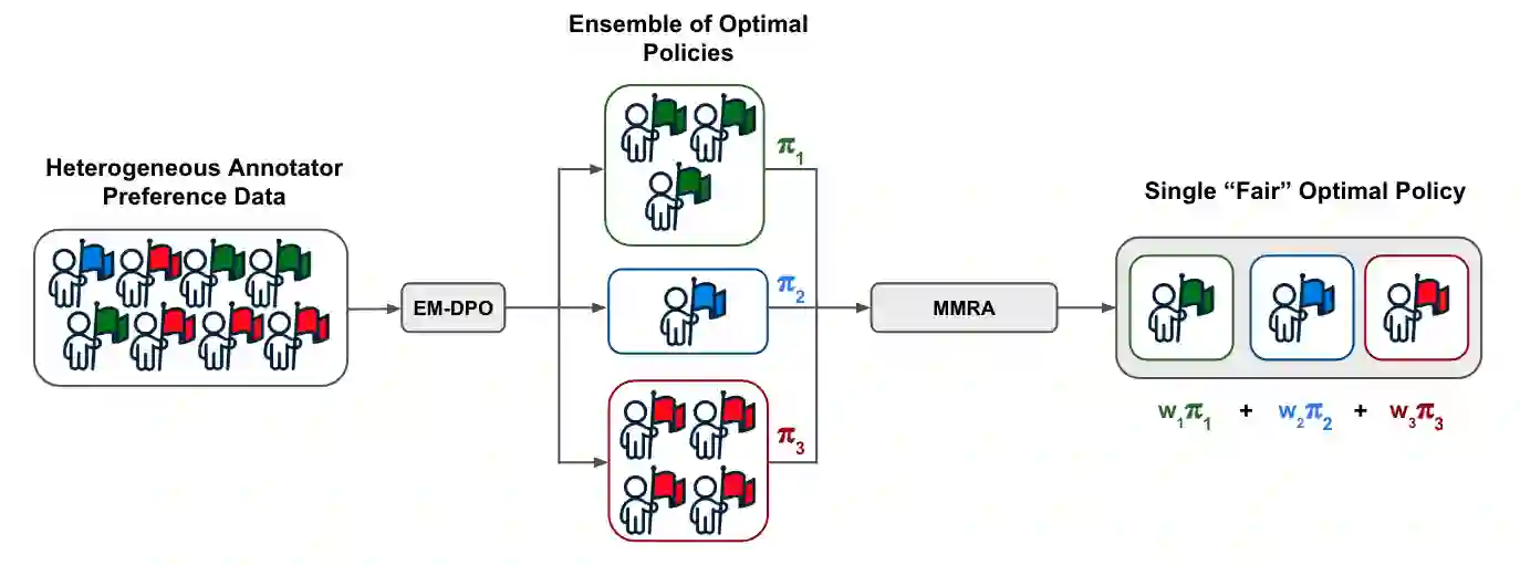 Reinforcement Learning from Human Feedback (RLHF) has become central to aligning large language models with human values, typically by first learning a reward model from preference data which is then used to update the model with reinforcement learning. Recent alternatives such as Direct Preference Optimization (DPO) simplify this pipeline by directly optimizing on preferences. However, both approaches often assume uniform annotator preferences and rely on binary comparisons, overlooking two key limitations: the diversity of human evaluators and the limitations of pairwise feedback. In this work, we address both these issues. First, we connect preference learning in RLHF with the econometrics literature and show that binary comparisons are insufficient for identifying latent user preferences from finite user data and infinite users, while (even incomplete) rankings over three or more responses ensure identifiability. Second, we introduce methods to incorporate heterogeneous preferences into alignment algorithms. We develop an Expectation-Maximization adaptation of DPO that discovers latent annotator types and trains a mixture of LLMs accordingly. Then we propose an aggregation algorithm using a min-max regret fairness criterion to produce a single generative policy with equitable performance guarantees. Together, these contributions establish a theoretical and algorithmic framework for fairness and personalization for diverse users in generative model alignment.