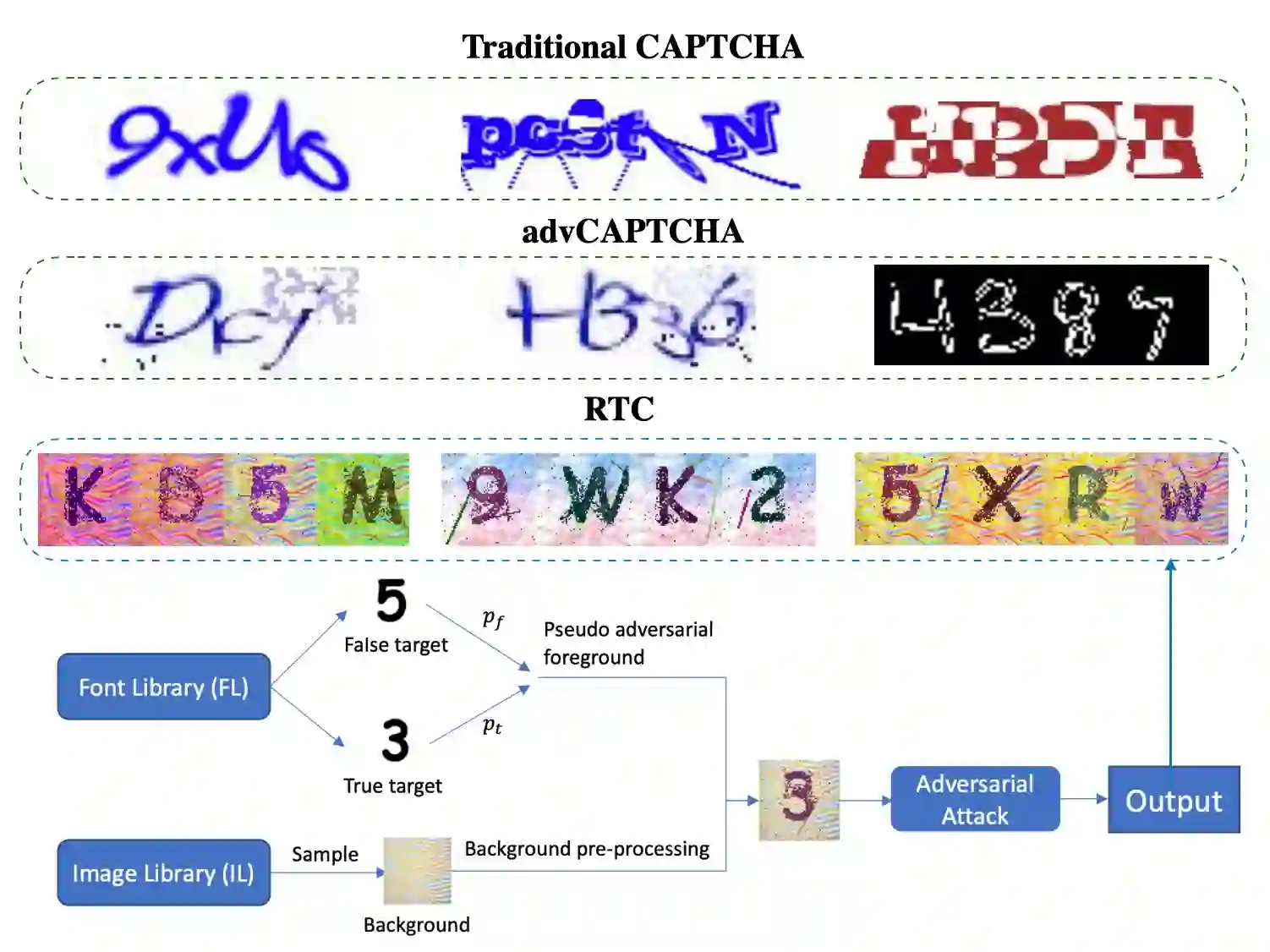 翻译:CAPTCHA(完整自动化公交测试,以告诉计算机和人类,Apart)是一种广泛使用的技术,用来区分真实用户和机器人等自动化用户。然而,AI技术的进步会削弱许多CAPTCHA测试,并可能引起安全关切。在本文中,我们建议一种基于用户的基于文本的CAPTCHA生成方法,名为Robust Text CAPTCHA(RTC) 。在第一阶段,背景和背景的构建是随机抽样字体和背景图像,然后合成为可识别的伪对抗式CAPTCHA。在第二阶段,我们设计和应用一种高度可转让的对立式对立式对立式攻击来更好地阻扰CAPTCHA的解答器。我们的实验包括浅模型,如KNN、SVM和随机森林、各种深层神经网络和OCR模型。实验显示,我们的CTCHA一般和高可用性都低于100万分之故障率。它们也是针对攻击者可能使用的各种防御性技术,包括对抗性训练、数据预处理和人工标记。