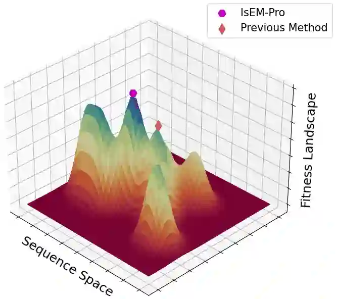Designing protein sequences with desired biological function is crucial in biology and chemistry. Recent machine learning methods use a surrogate sequence-function model to replace the expensive wet-lab validation. How can we efficiently generate diverse and novel protein sequences with high fitness? In this paper, we propose IsEM-Pro, an approach to generate protein sequences towards a given fitness criterion. At its core, IsEM-Pro is a latent generative model, augmented by combinatorial structure features from a separately learned Markov random fields (MRFs). We develop an Monte Carlo Expectation-Maximization method (MCEM) to learn the model. During inference, sampling from its latent space enhances diversity while its MRFs features guide the exploration in high fitness regions. Experiments on eight protein sequence design tasks show that our IsEM-Pro outperforms the previous best methods by at least 55% on average fitness score and generates more diverse and novel protein sequences.