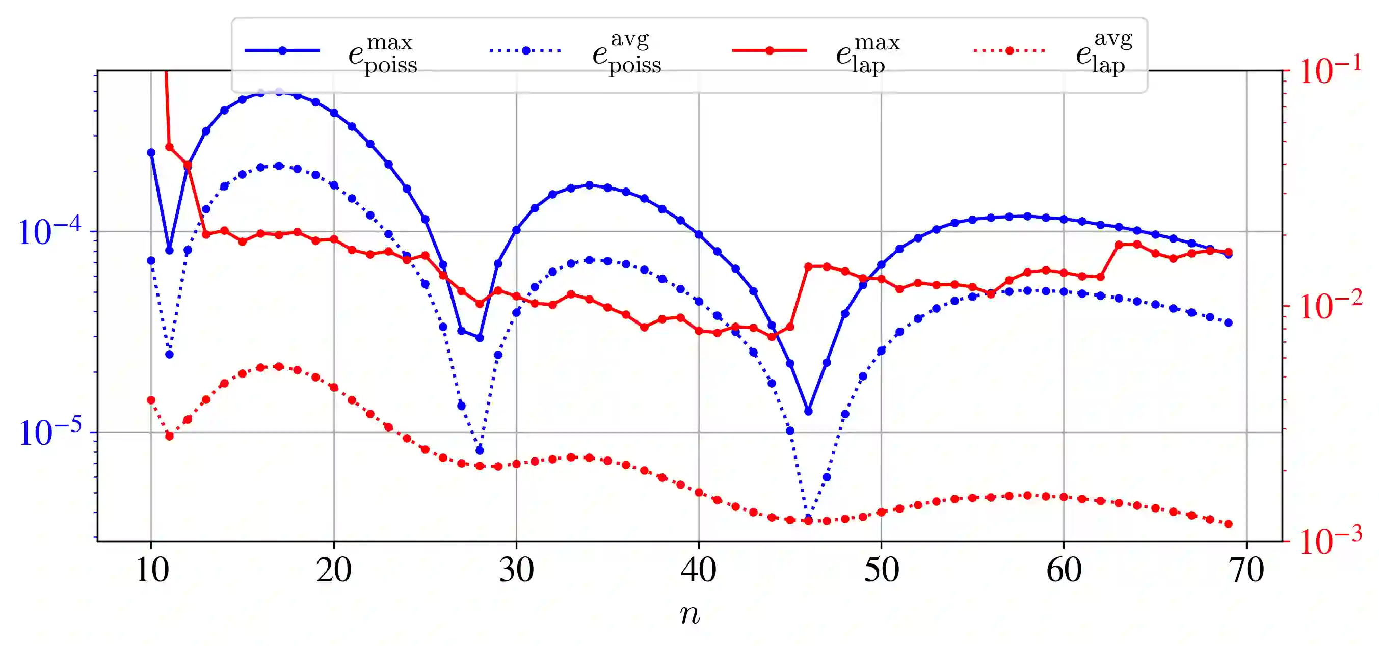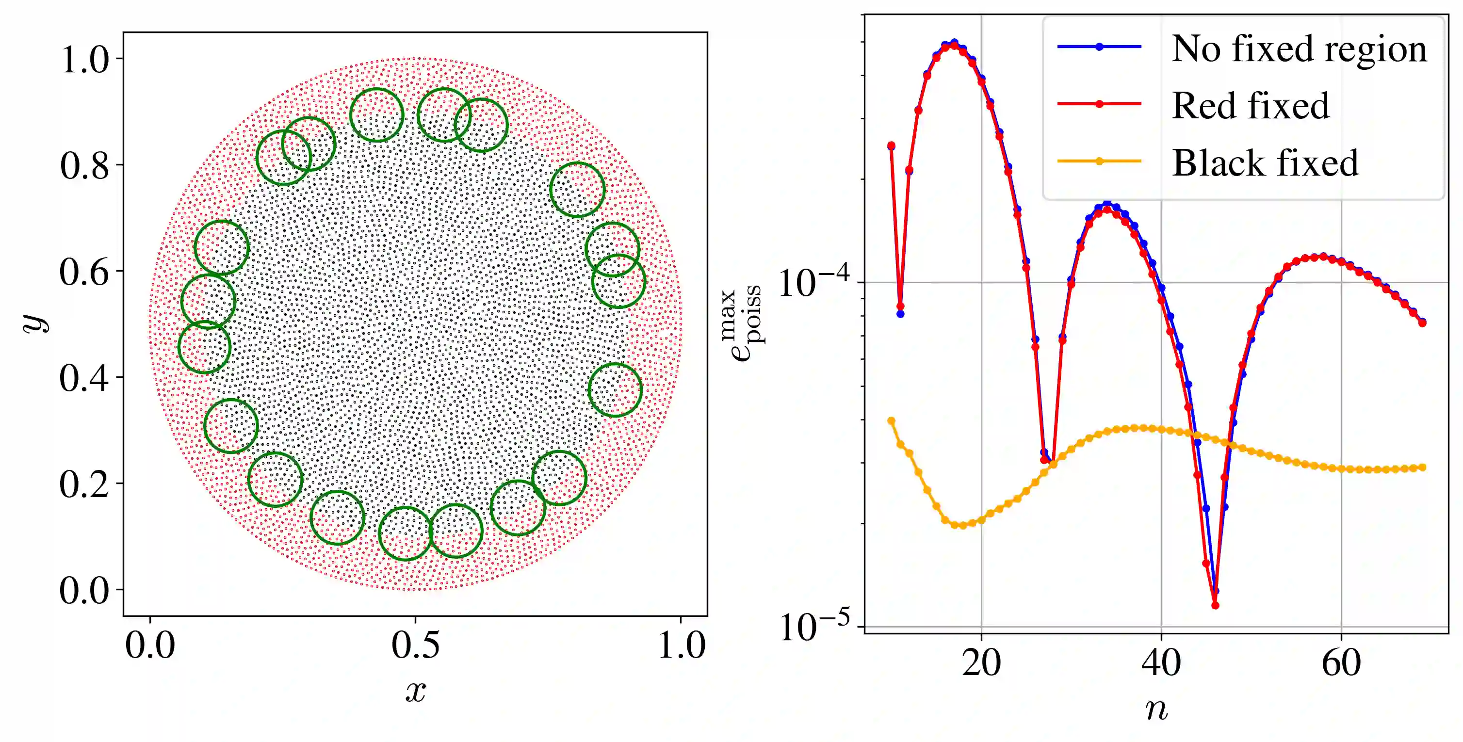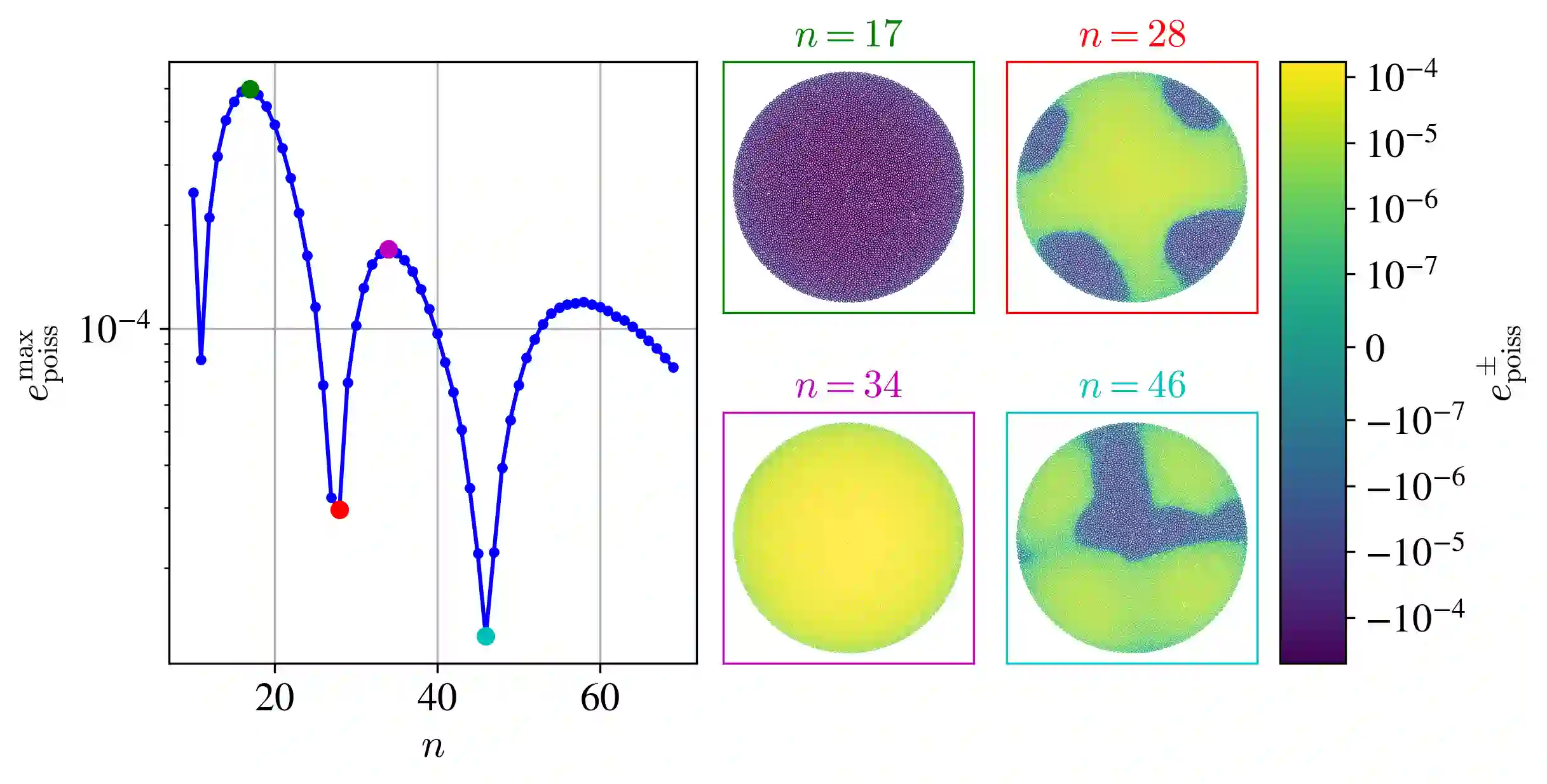 翻译:在使用RBF-FD方法在扩散节点上求解偏微分方程时,必须选择模板大小之一。重点研究了具有单项式增强的多次谐波样条RBF,发现它以一种特别有趣的方式影响逼近精度-在增加模板大小下,解决方案误差会振荡。我们发现,我们可以将这种行为与带符号逼近误差的空间依赖性联系起来。基于这个观察结果,我们能够引入一种数字量,指示一个给定的模板大小是否在局部上是最优的。