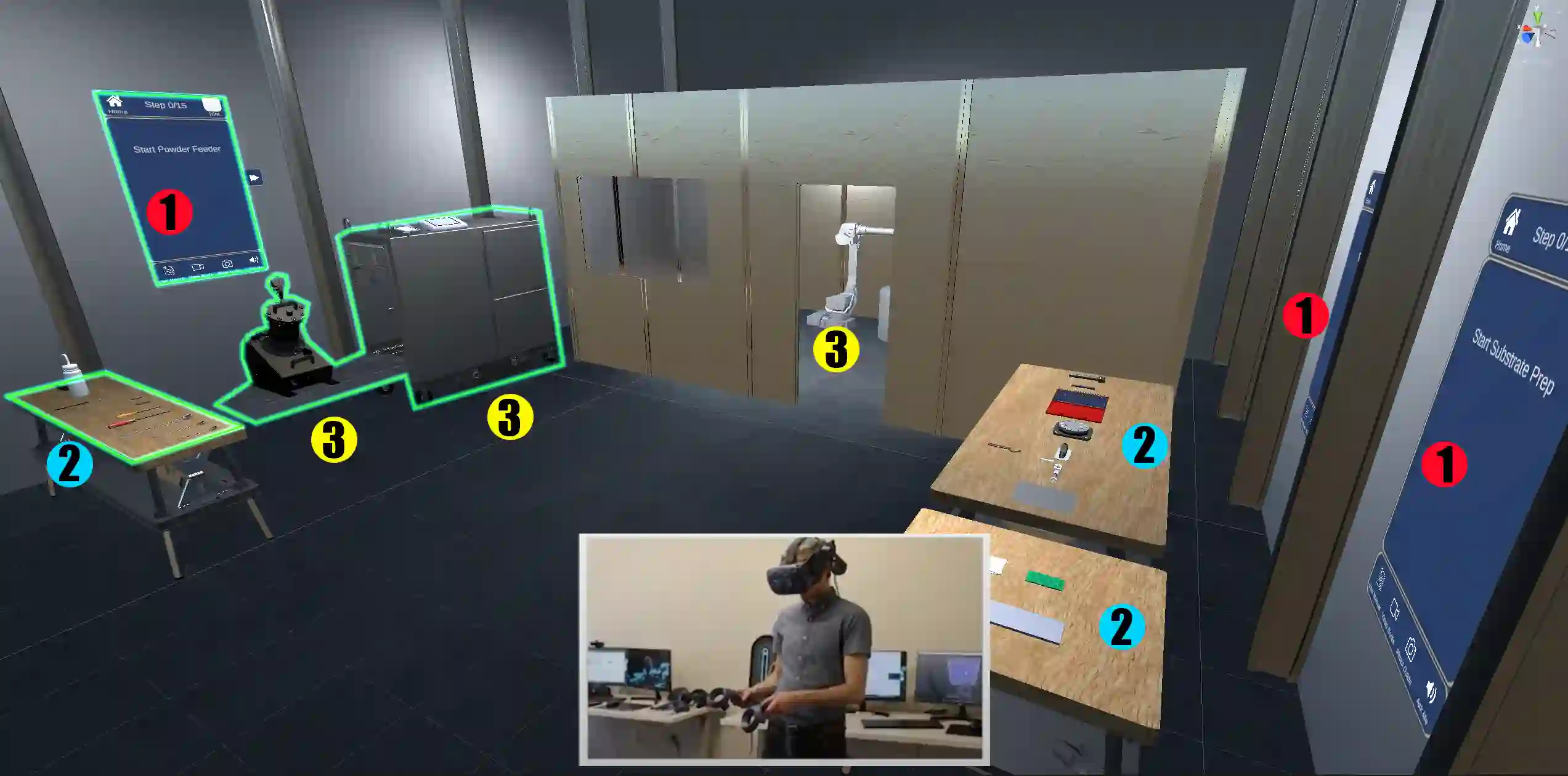 翻译:先进制造领域的学徒与培训项目常因使用重型机械而面临安全性与可及性问题。虚拟现实(VR)培训可在满足此类培训对空间及流程学习要求的同时,突破上述限制。然而,由于先进制造工艺复杂度高且需专家长期指导新手,设计有效的VR培训仍具挑战性。本文提出一种专为冷喷涂工艺定制的VR培训学徒系统(VRTA),该系统通过精心设计的步骤向新手传授这一特定先进制造工艺。为评估其有效性,我们开展了一项探索性研究($n = 22$),通过量化量表评估用户体验指标,收集用户定性反馈,并考察受训者在完成VR培训后操作实际设备的任务表现。本文进一步探讨了VRTA设计如何提升培训成效,以及将VR培训应用于先进制造领域所面临的挑战。