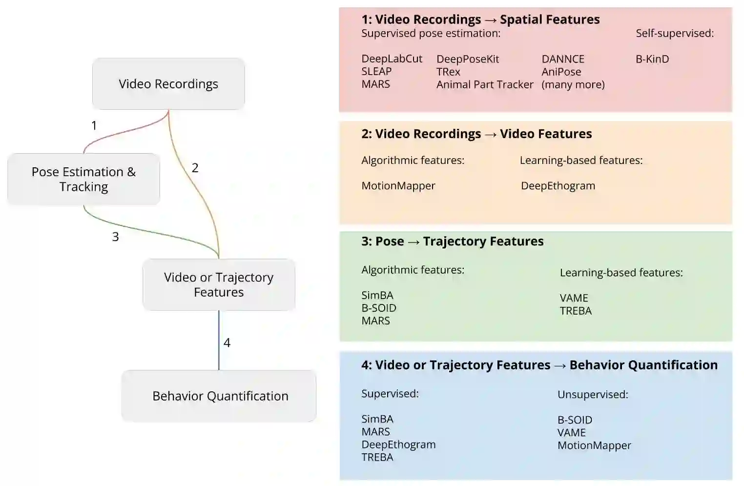 翻译:最近开发的视频分析方法,特别是图像估计和行为分类模型,正在改变行为量化方法,使之更加精确、可伸缩,并在神经科学和神学等领域可以复制。这些工具克服了人工评分视频框架和传统的“质量中心”跟踪算法的长期局限性,以便能够进行规模的视频分析。视频获取和分析的开放源工具的扩大导致了理解行为的新的实验方法。在这里,我们审查了现有的视频分析开放源工具,并讨论了如何为新到视频记录的实验室建立这些方法。我们还讨论了开发和使用视频分析方法的最佳做法,包括全社区标准和开放分享数据集和代码的关键需求,对视频分析方法进行更广泛的比较,以及改进这些方法的文献记录,特别是对新用户而言。我们鼓励更广泛地采用和继续开发这些工具,这些工具对于加快了解大脑和行为的科学进步具有巨大的潜力。