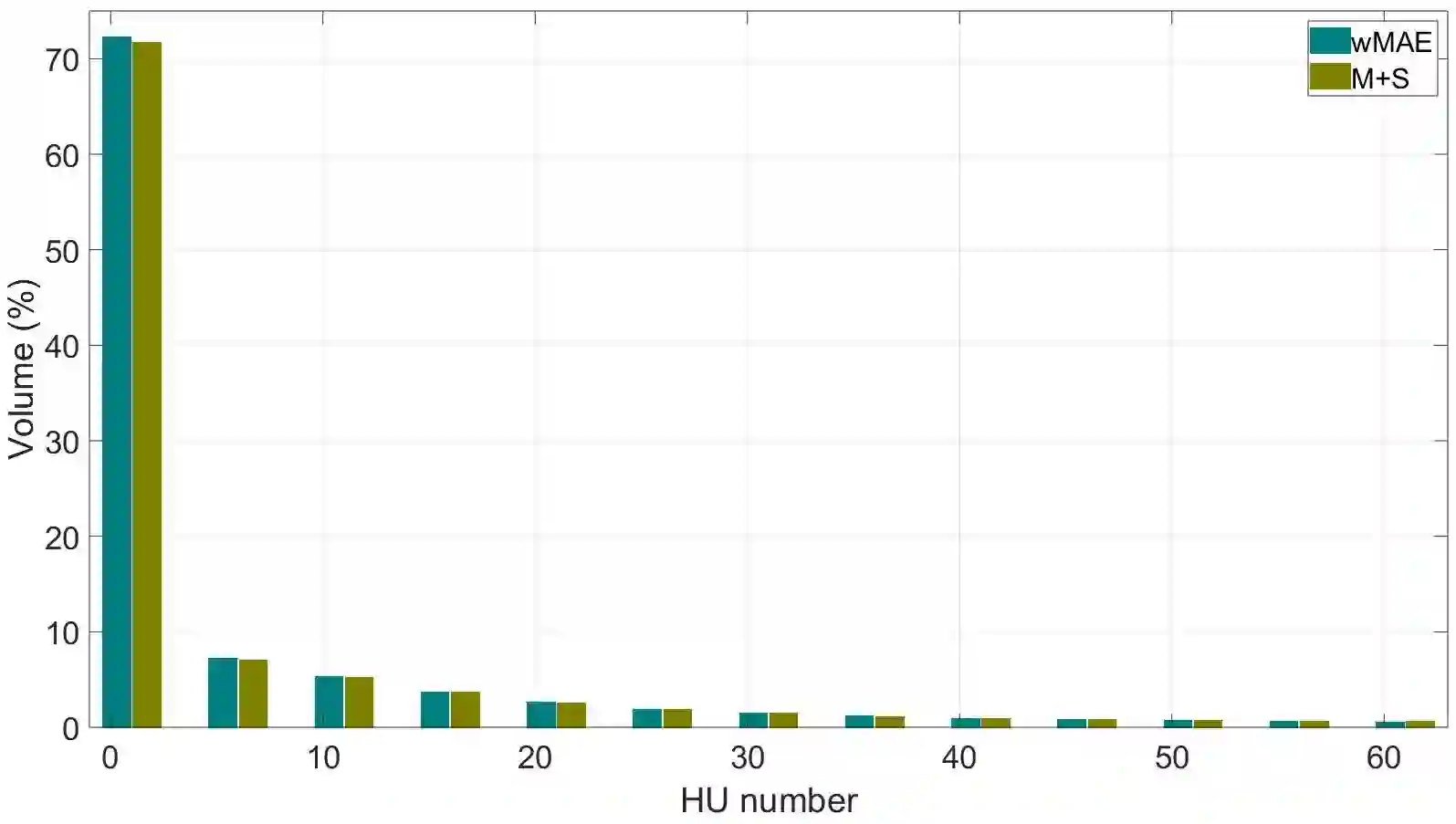 结果:该模型达到了2.1秒的速度和小于40HU的MAE。CDVH显示<5%的体素有大于185 HU的每体素绝对CT数字差异。