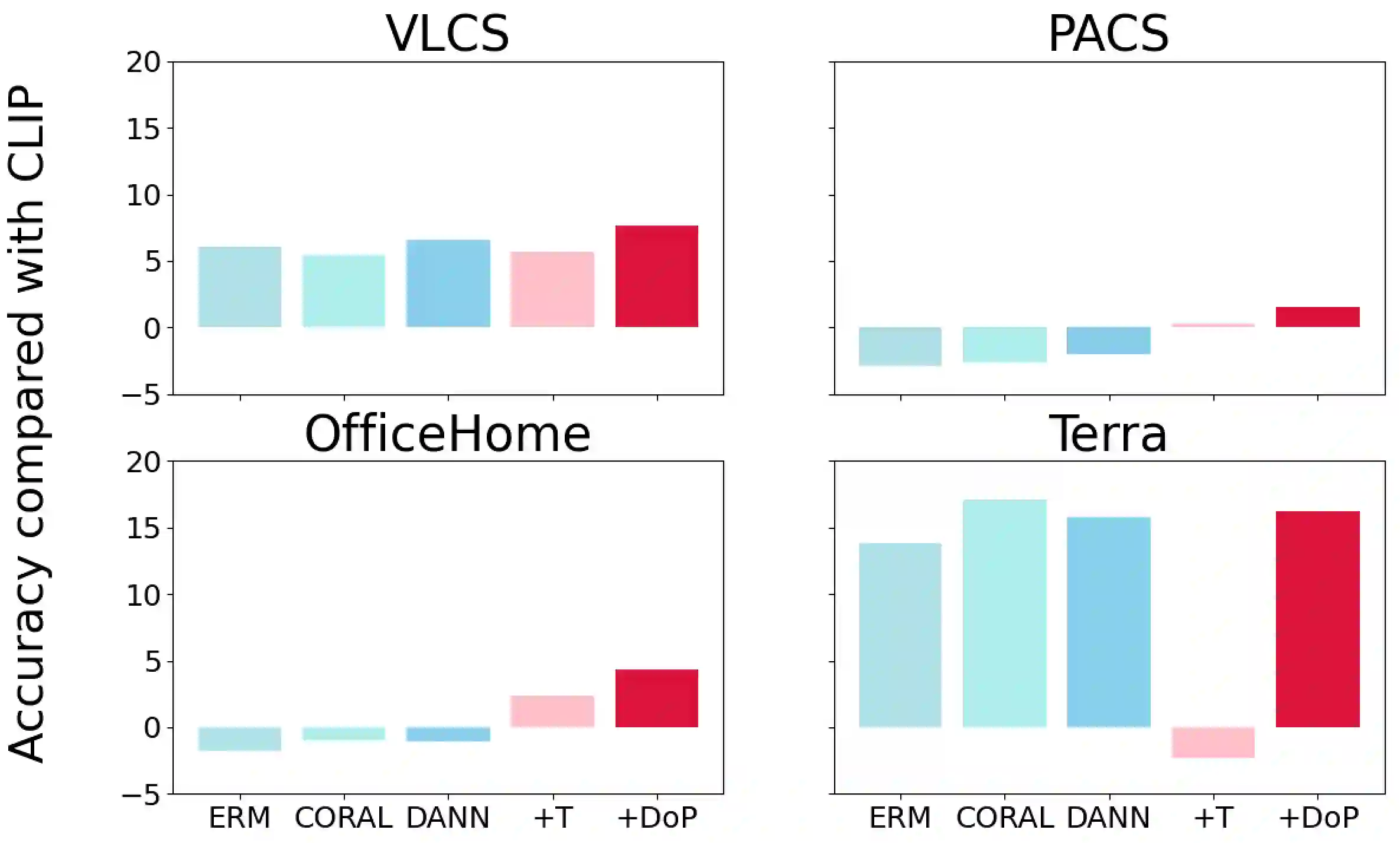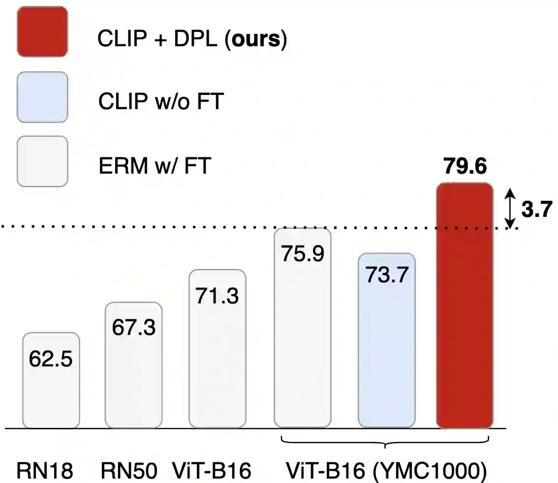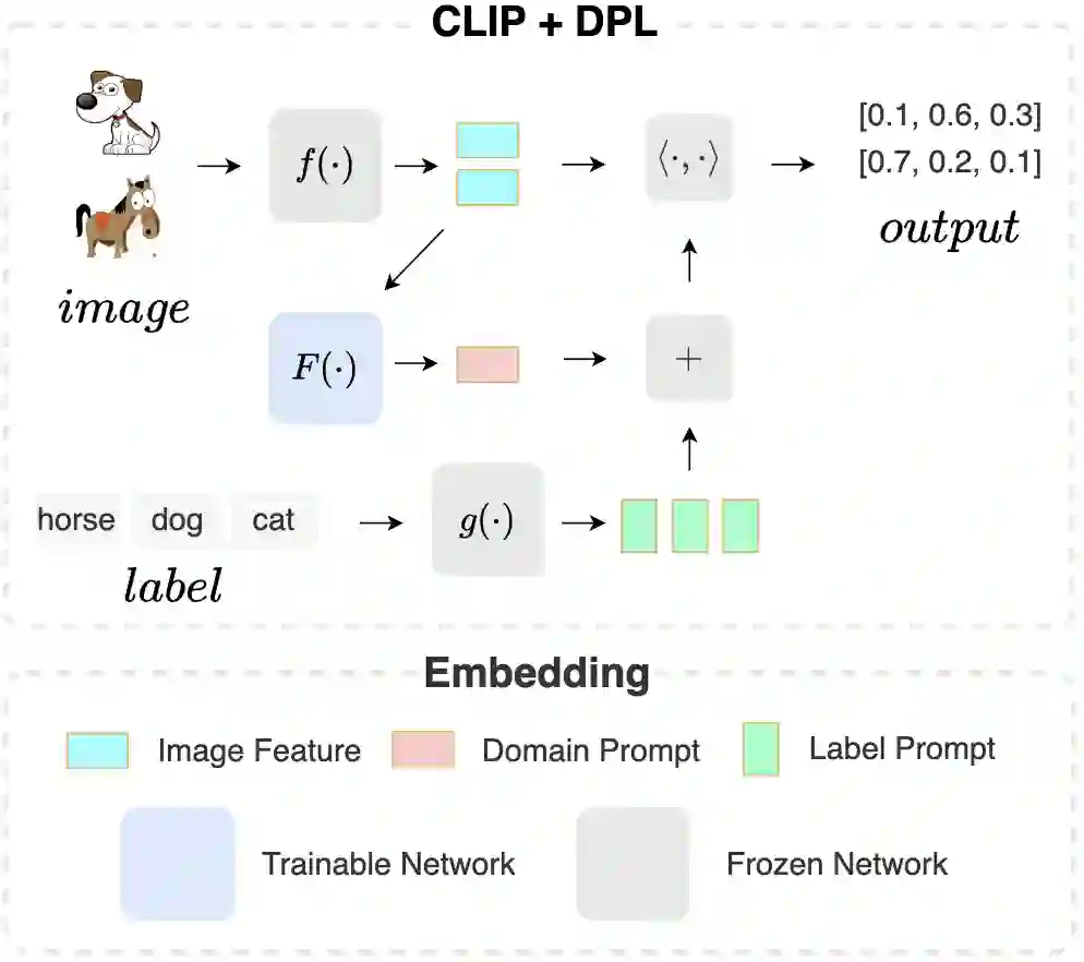 翻译:广域化( DG) 是一个困难的转移学习问题, 目的是学习一个普通的无形域模式。 最近的基础模型( FMs) 是针对许多分布变化的, 因此应该大大改善DG的绩效。 在这项工作中, 我们研究采用通用方法, 采用CLIP(视觉语言基础模型), 解决图像分类中的 DG 问题。 虽然机构化使用标准DG 基准, 大大提高了使用更大的主干线和培训数据集的准确性, 微调调调在许多现实世界情况中并不实用。 我们提议Dome快速学习(DPL) 是一种创新的方法, 以有条件的快速生成为形式进行域推论。 DPLLC 取得了显著的准确性改进, 仅培训了轻量级的快速生成器( 3级 MLP), 其参数相当于GDG文献中的分类投影机。 将\ dplshort~ 与 CLIP 组合提供惊人的性能, 将零点 CLIP 的准确率从73. 提高到79. 3% 几个标准数据集, 即 PACS、 VLCSLCS、 OfferHHHHHHHH 和Teralimpalimpal 和TLOL.