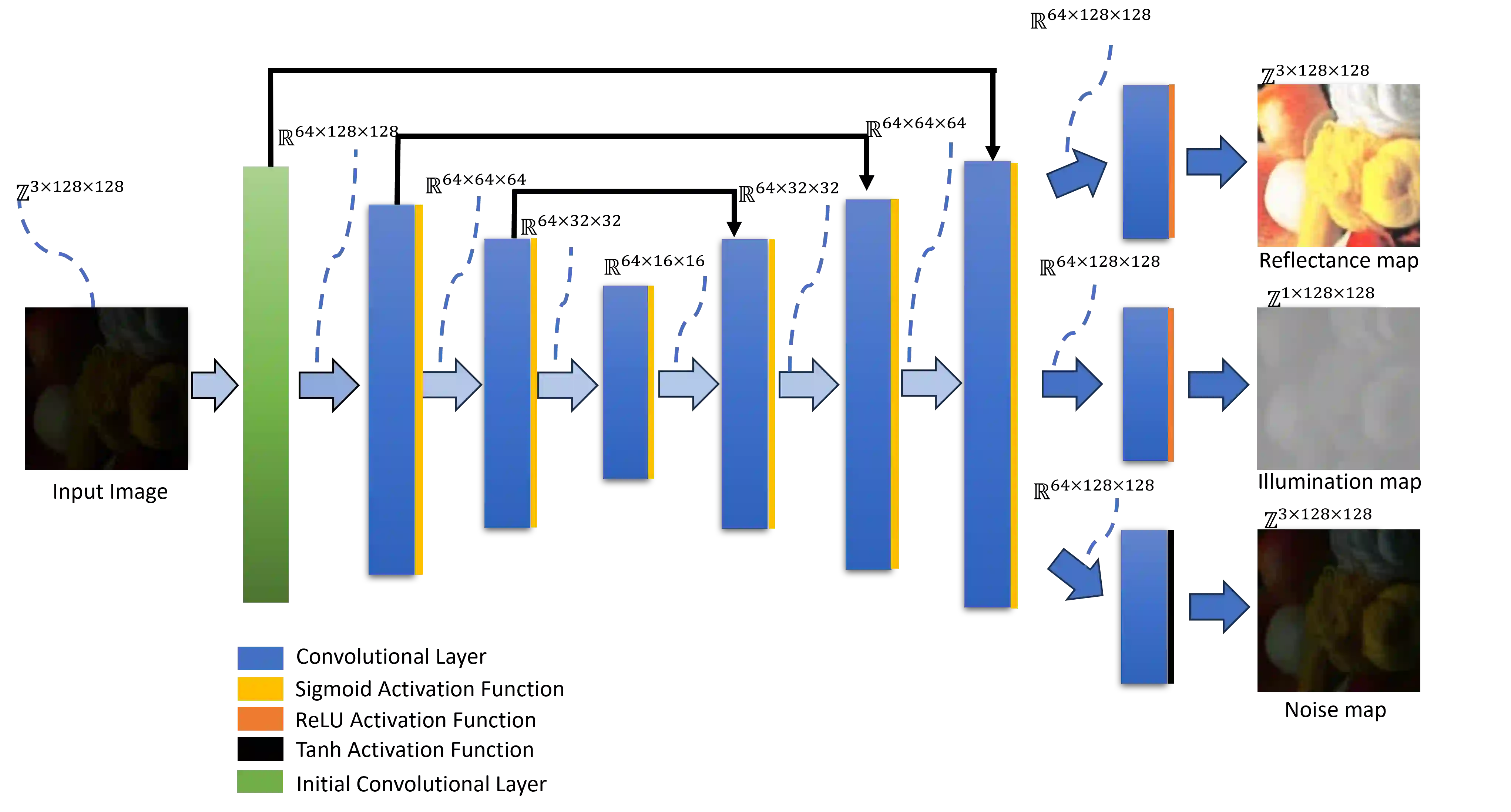 翻译:低光照图像去噪与增强具有挑战性,尤其是在传统噪声假设(如高斯噪声)在多数情况下不成立时。在许多实际场景(如低光照成像)中,噪声具有信号依赖性,更适合用泊松噪声建模。本研究针对极端低光照条件下受泊松噪声退化的图像去噪问题,提出一种轻量级深度学习方法,将基于Retinex的分解与泊松去噪集成到统一的编码器-解码器网络中。该模型通过引入泊松去噪损失函数处理信号相关噪声,同步实现光照增强与噪声抑制。无需反射率与光照的先验信息,网络能够学习有效的分解过程,在确保反射率一致性与光照平滑性的同时避免任何形式的色彩失真。实验结果表明,所提出的低光照增强方法具有显著的有效性与实用性。该方法在低光照条件下显著提升图像可见度与亮度,同时保持环境光照下的图像结构与色彩恒常性。