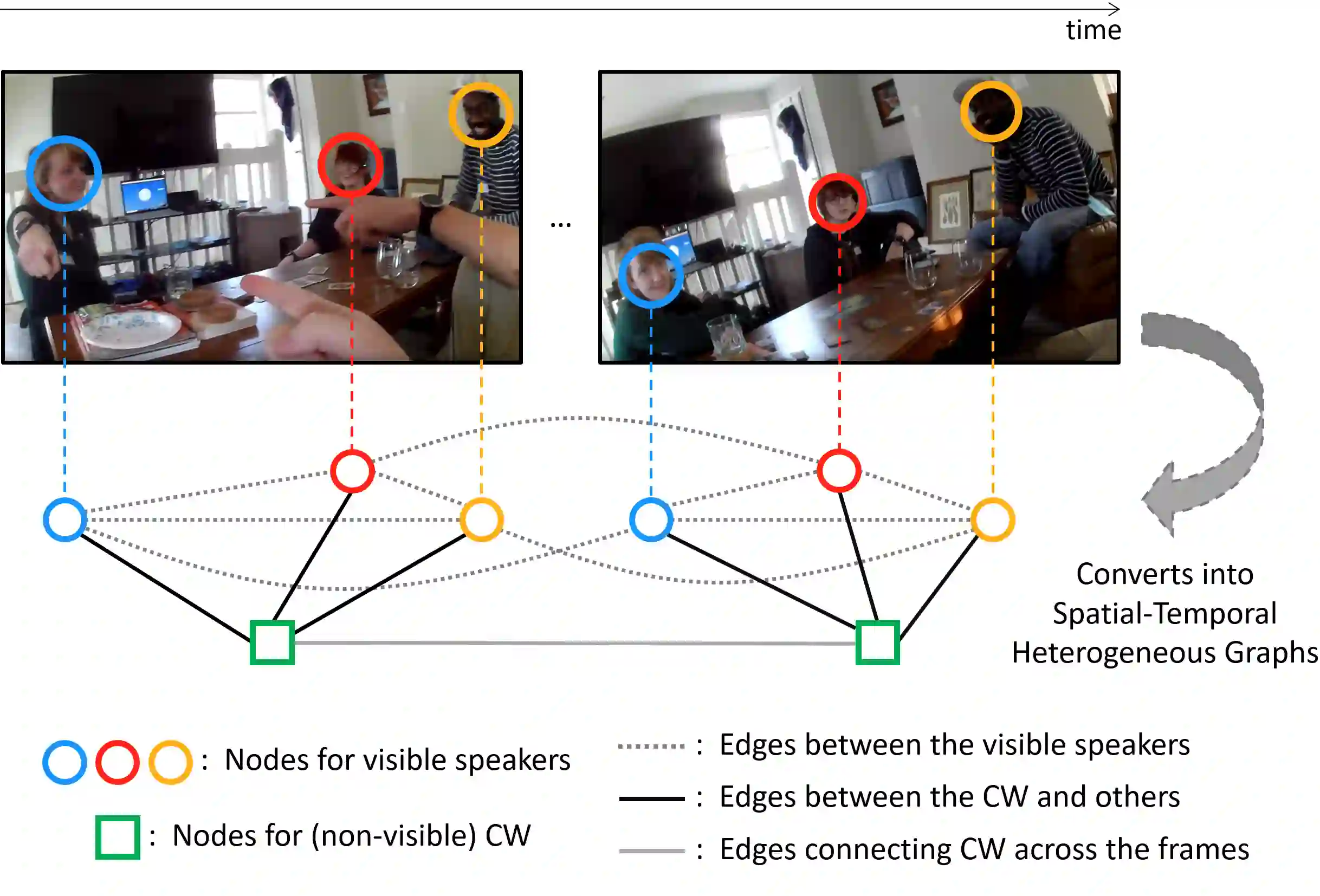 This report introduces our novel method named STHG for the Audio-Visual Diarization task of the Ego4D Challenge 2023. Our key innovation is that we model all the speakers in a video using a single, unified heterogeneous graph learning framework. Unlike previous approaches that require a separate component solely for the camera wearer, STHG can jointly detect the speech activities of all people including the camera wearer. Our final method obtains 61.1% DER on the test set of Ego4D, which significantly outperforms all the baselines as well as last year's winner. Our submission achieved 1st place in the Ego4D Challenge 2023. We additionally demonstrate that applying the off-the-shelf speech recognition system to the diarized speech segments by STHG produces a competitive performance on the Speech Transcription task of this challenge.
