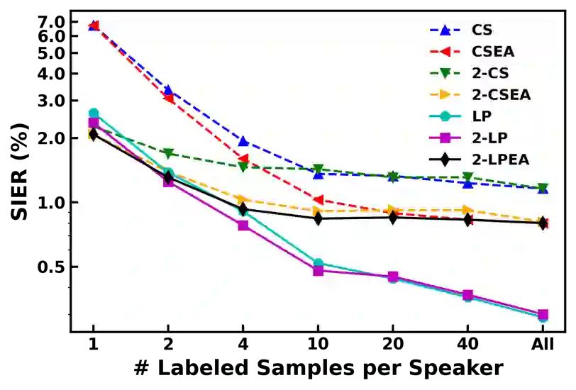 翻译:在家庭情况中,主讲人身份(例如,智能发言者)通常仅基于少数几句注册语句,但有大得多的一组未贴标签的数据,建议采用半监督的学习方法来改进演讲人的简况。我们提议了一种基于图形的半监督的学习方法,用于在家庭情况中识别发言者身份,以利用未贴标签的语音样本。与大多数发言者认识到侧重于发言者差异性嵌入标准的工作不同,这项工作侧重于语音标签标签推断(比照)。鉴于预先培训的嵌入提取器(比照),基于图形的学习使我们能够整合关于标签和未贴标签的言语的信息。考虑到每个词的图表节点,我们将配对的超音率分作为边距加权。图表是按住户构造的,发言者身份被传播为未贴标签的节点,以优化全球一致性标准。我们在VoxCeeleb数据集的实验中显示,这种方法能够有效利用未贴标签的数据,并提高演讲人的识别准确度,而与两种状态的评分数方法相比,我们以半监督的变式为基础,作为准的准的标签变式。