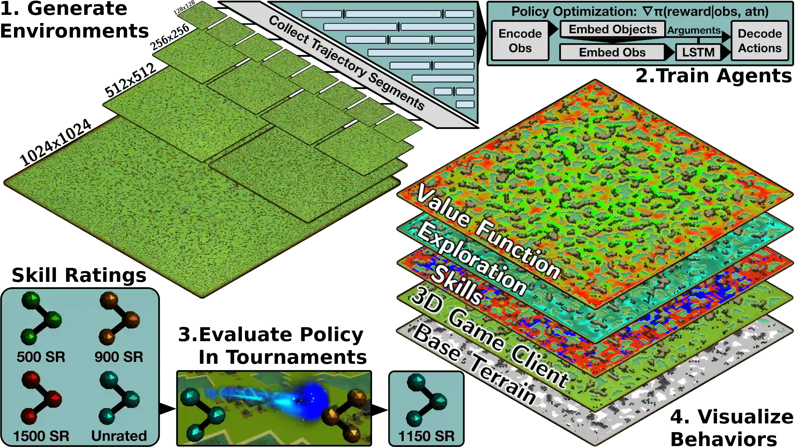 翻译:神经MMO(Neoral MMO)是一个可计算使用的研究平台,它包括大量物剂、长时间跨度、开放式任务和模块游戏系统。现有环境具有这些特性的子集,但神经MMO(Neoral MMO)是第一个将其组合起来的。我们将神经MMO(Neoral MMO)作为自由和开放源代码软件,提供积极的支持、持续开发、文件编制和额外培训、记录和可视化工具,以帮助用户适应这一新的环境。平台上的初步基线显示,受过大量培训的物剂可以探索更多技能,学习技能的发展。我们提出了其他更困难的问题,比如许多团队合作,如开放式研究问题,神经MMO(Neoral MMO)非常适合回答。最后,我们讨论了平台当前的局限性、潜在减缓和持续开发计划。