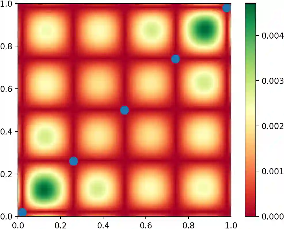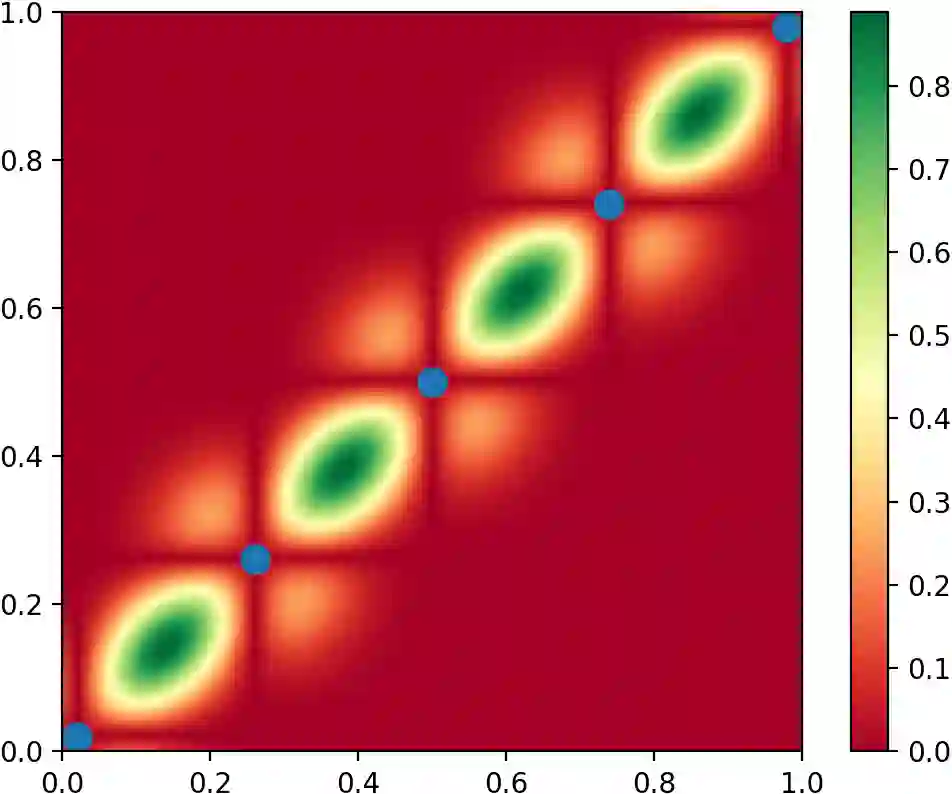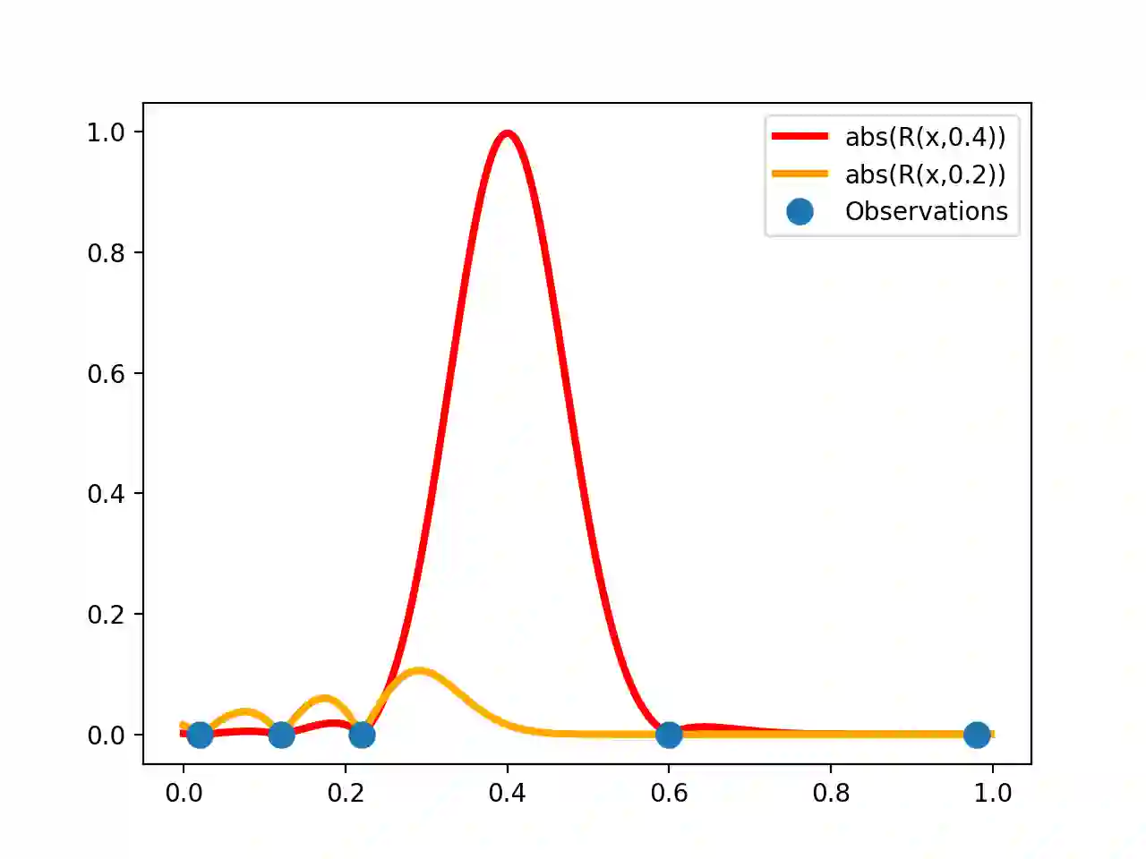 翻译:本文对高斯过程中的后验协方差场进行了全面分析,并将其应用于后验协方差矩阵。该分析基于高斯先验协方差,但所提出的方法同样适用于其他协方差核函数。我们的几何分析揭示了高斯核的带宽参数与观测点的空间分布如何影响后验协方差及其对应的协方差矩阵,从而能够直接识别协方差幅值较高或较低的区域。受自适应有限元方法中后验误差估计技术的启发,我们还提出了若干估计量以高效度量绝对后验协方差场,这些估计量可用于高效的协方差矩阵近似与预条件处理。我们通过大量实验验证了理论发现及其实际应用价值。