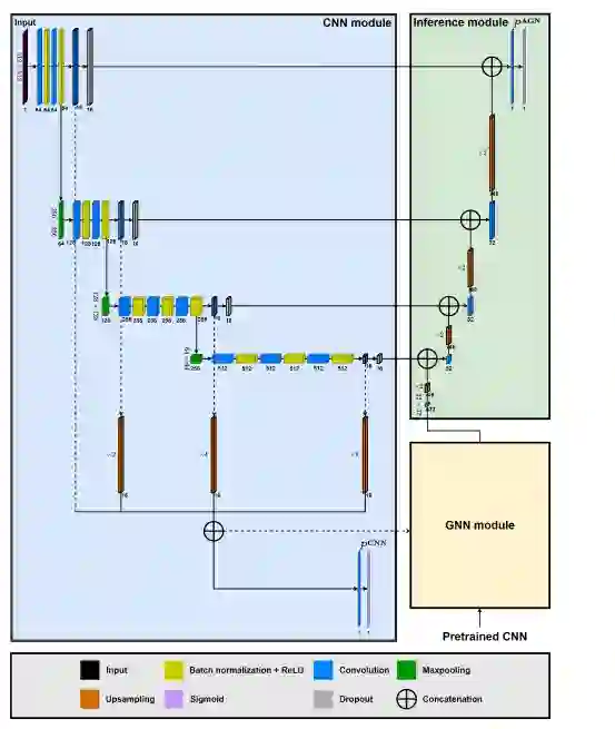翻译:脑出血是15至24岁人群死亡的首要原因,是老年人死亡的第三大原因。计算断层成像(CT)是一种用于诊断神经紧急情况的成像模式,包括中风和创伤性脑损伤。深层学习和图像处理的最近进展利用了诸如CT扫描等不同模式,帮助脑出血事件的检测和分解自动化。在本文中,我们提议采用由传统革命神经网络(CNN)和图象神经网络(GNNN)组成的结构,为脑出血分解任务制作一个整体模型。GNNs关于邻居群聚原则的工作,从而提供了图像中全球结构的可靠估计。GNNs在少数层次上工作,因而需要较少的参数来开展工作。我们得以实现约0.81的狄氏系数分数,与我们的实施数据有限。
