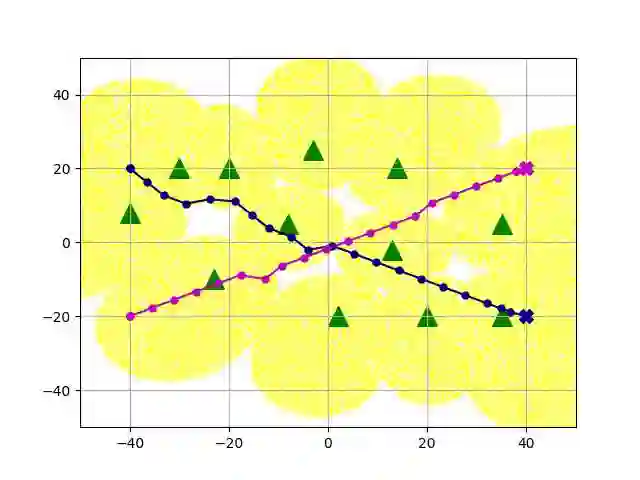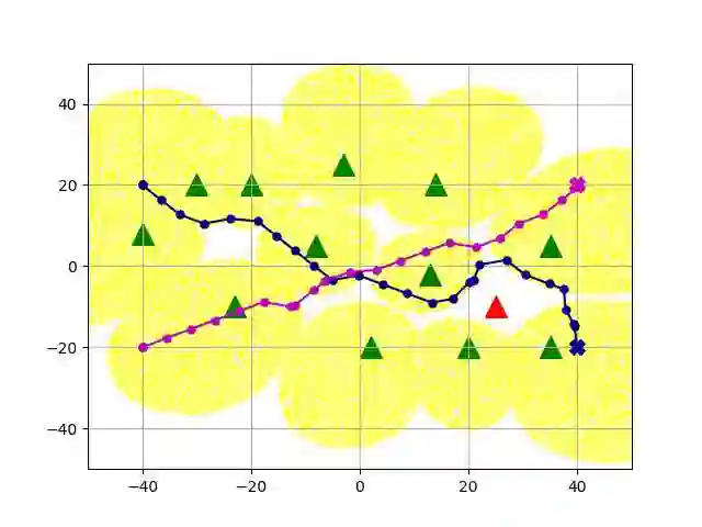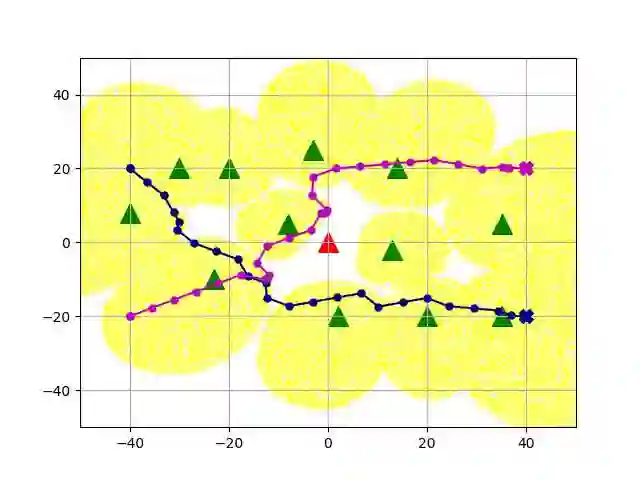 翻译:无人驾驶航空飞行器(UAVs)预计将成为无线网络的一个组成部分。 在本文中,我们的目标是寻找多个蜂窝连接的无人驾驶航空器的无碰撞路径,同时满足在动态干扰器面前与地面基地站(GBS)连接的要求。我们首先将这一问题作为离散域的相继决策问题,提出连通、避免碰撞和运动限制。然后,我们提出一个离线时间差异(TD)学习算法,以在线信号到干涉加噪音比率(SINR)绘图解决问题。更具体地说,一个价值网络是用TD方法建造和培训离线的,以编码无人驾驶飞行器之间以及无人驾驶飞行器与环境之间的相互作用;一个在线SIRNR测绘深神经网络(DNNN)的设计和培训,通过有监督的学习来说明干扰的影响和变化。 数字结果显示,在没有关于干扰器的任何信息的情况下,拟议的算法可以达到接近理想情景的性能水平,而SINR-M-map是完美的,通过实时导航和高度避免的多式导航成功率进行。