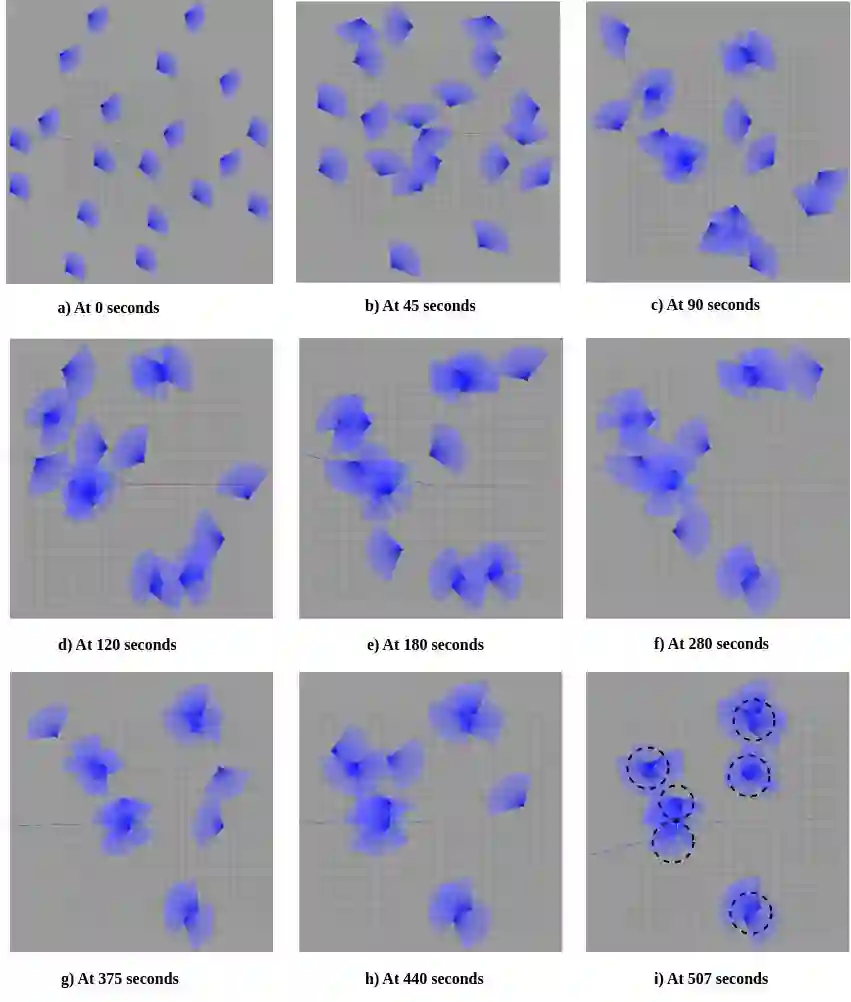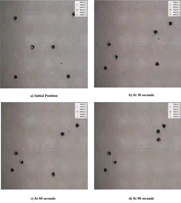 翻译:本文研究群体自聚类问题,其中机器人仅通过局部感知与自主决策,在无外部指令、全局定位或机器人间通信的条件下,自主组织成空间连贯的集群。每个机器人通过机载有限视场测距传感器探测邻近机器人的相对距离,据此形成并维持集群。该方法适用于全球定位系统拒止与通信受限环境,且无需预先获知集群规模、数量或成员构成。通过基于局部邻域规模在共识驱动与随机目标分配间切换的机制,确保了方法的鲁棒性、可扩展性以及与初始条件无关的不可追踪聚类特性。大量仿真与真实机器人实验验证了该方法在经验收敛性、动态增删适应性方面的表现,并在标准聚类质量指标上优于纯局部基线方法。